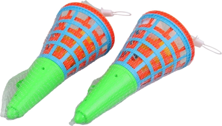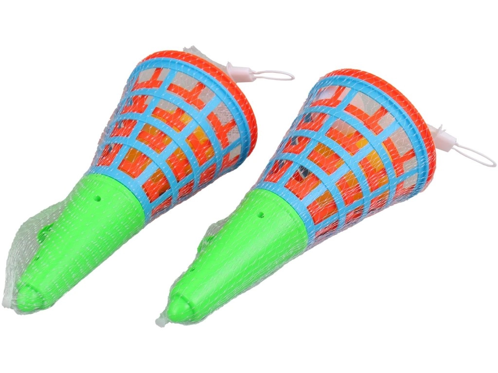 De set bevat 12 mandjes in twee kleuren, waardoor je in teams kunt spelen, minitoernooien kunt organiseren of je eigen regels kunt bedenken. Er zijn geen batterijen nodig – gewoon uitpakken en spelen.