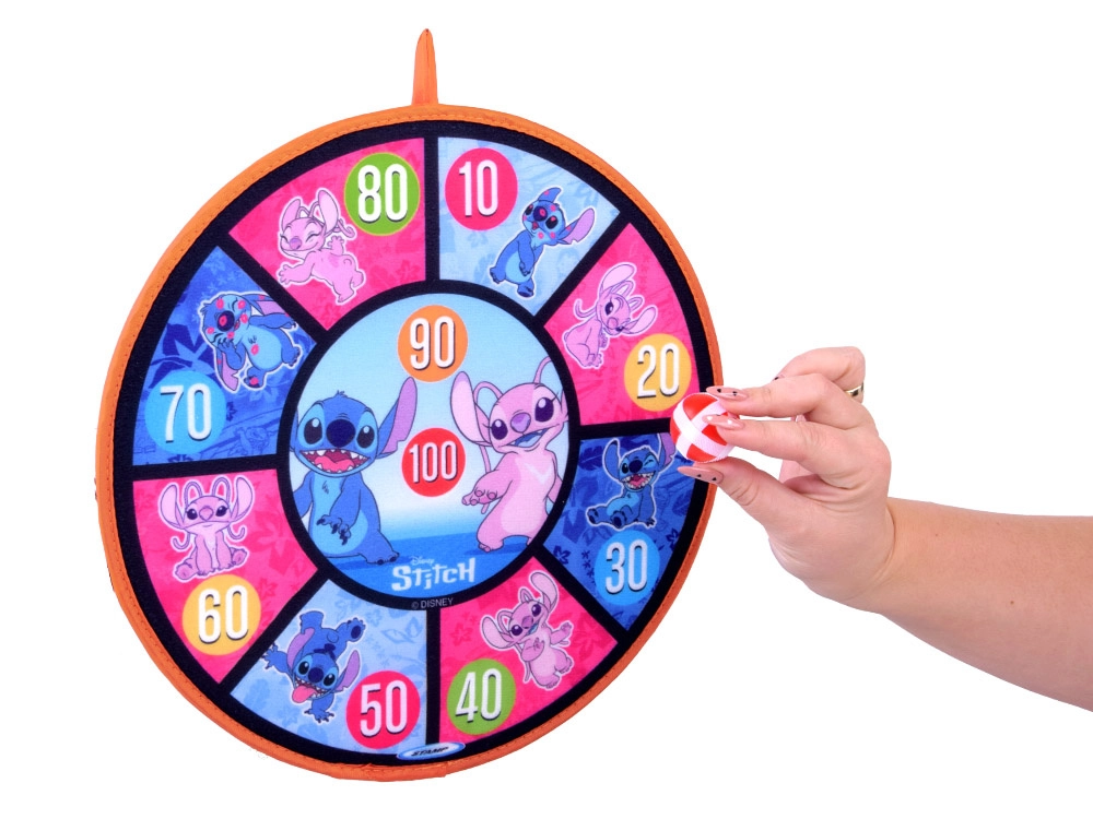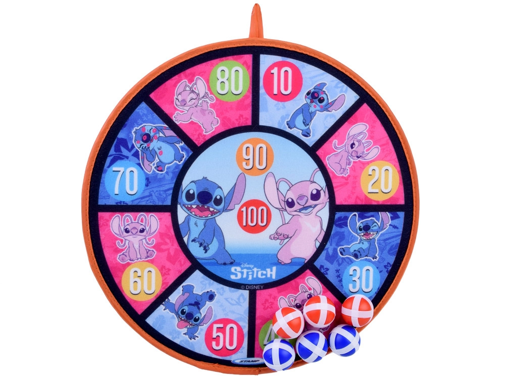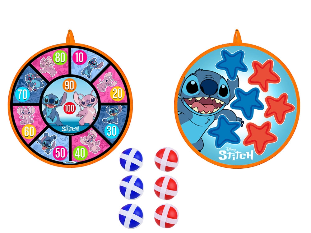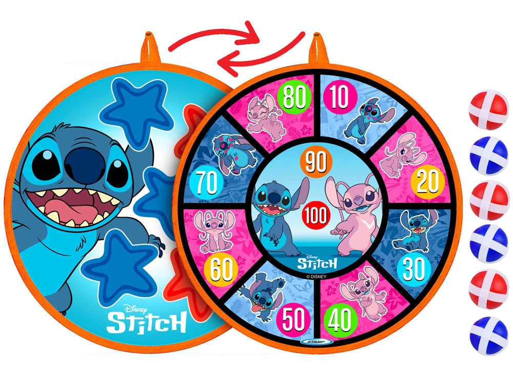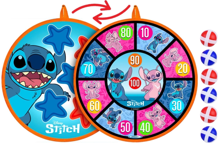 Het dubbelzijdige klittenband-dartsbord met stijlvolle STITCH-graphics biedt geweldige bewegingspret voor kinderen van verschillende leeftijden. Dankzij het zachte oppervlak en de lichte ballen is het spel veilig en geschikt voor zowel binnen als buiten. Het bord is eenvoudig op te hangen en in een handomdraai klaar voor wedstrijdjes en precisietraining.