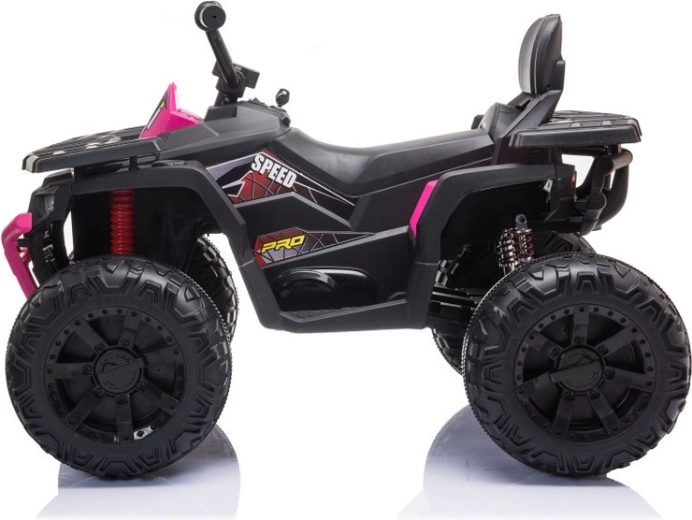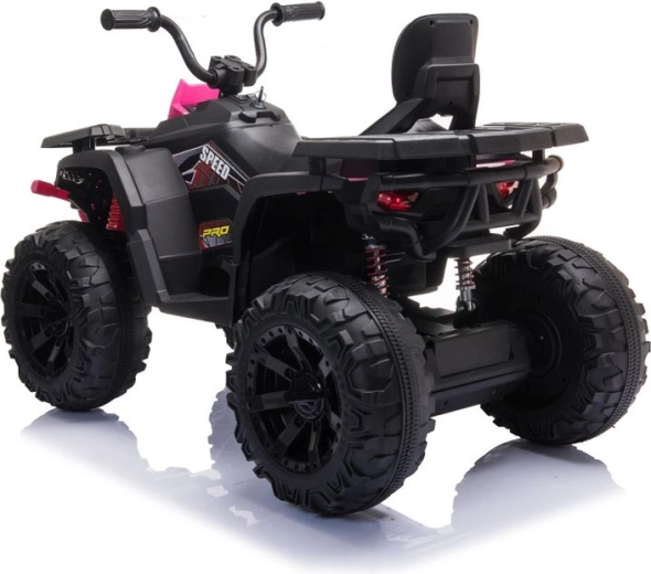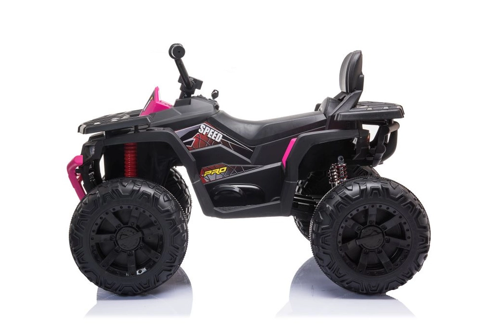 De roze‑zwarte look met beschermende bumper en realistische details geeft de quad een aantrekkelijke off‑road stijl.