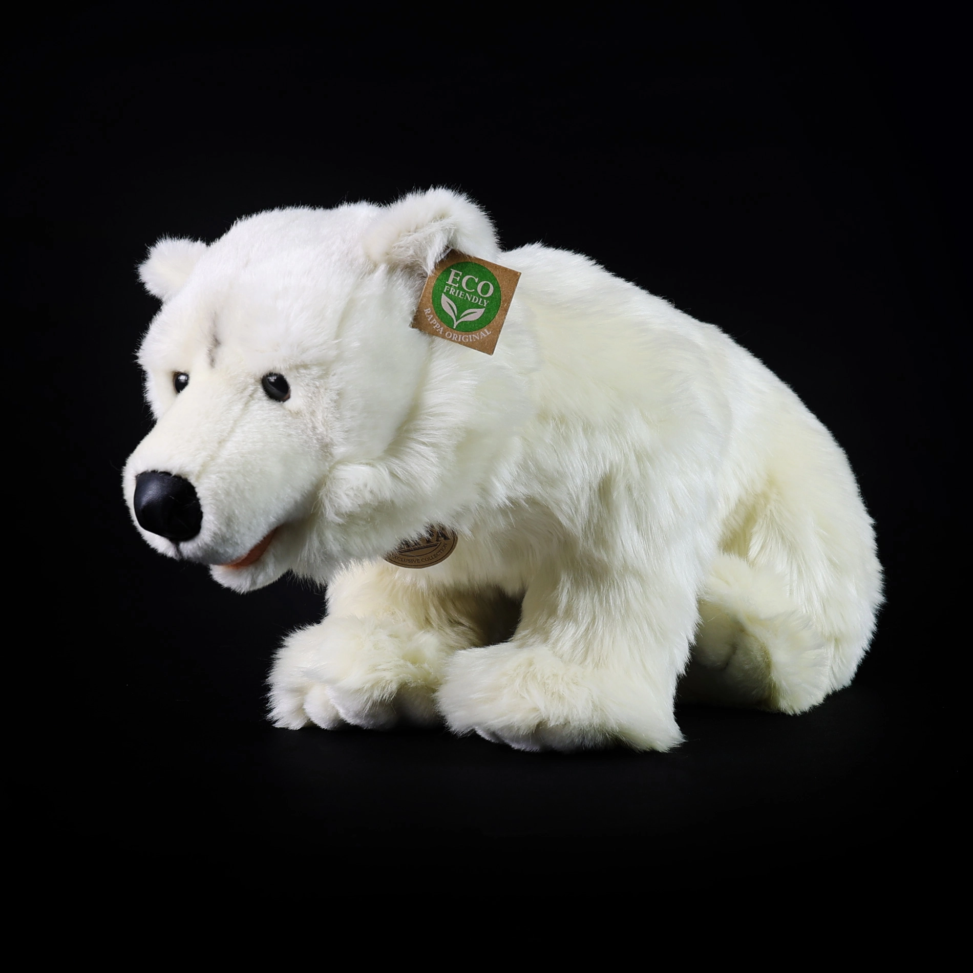 Schattige pluchen ijsbeer van 47 cm, gemaakt van luchtige, zijdezachte stof en dankzij het handgemaakte vakwerk bijna levensecht. Behoort tot de exclusieve collectie van Rappa en heeft een eco‑vriendelijke vulling van gerecyclede PET-flessen die zelfs voor pasgeborenen veilig is.