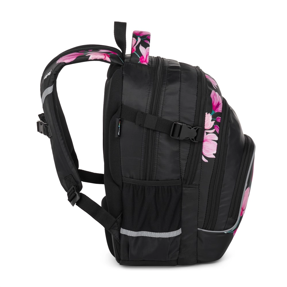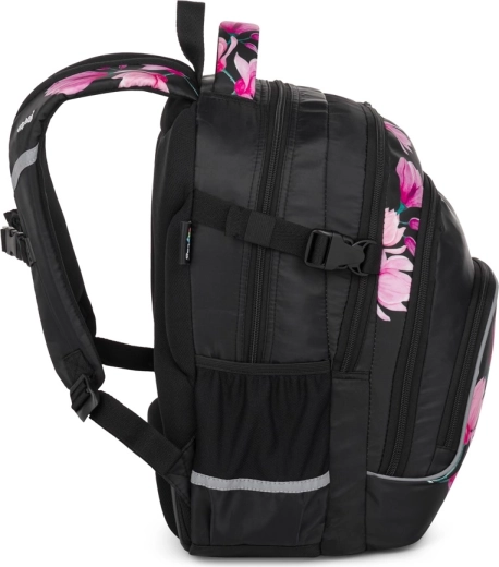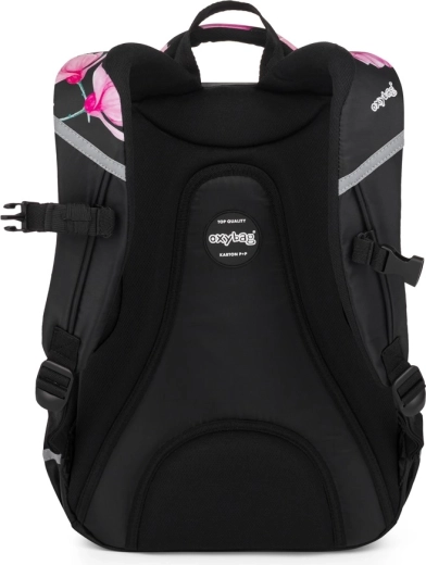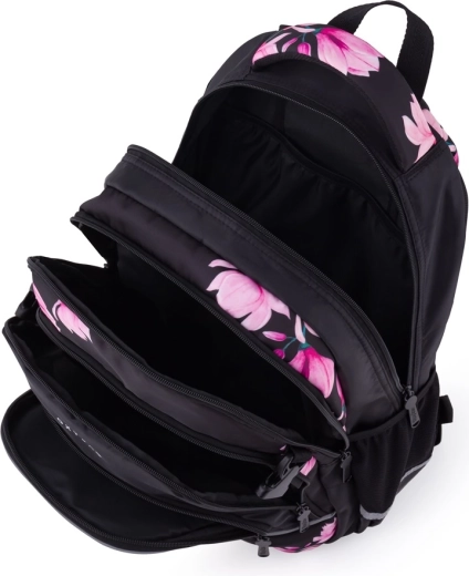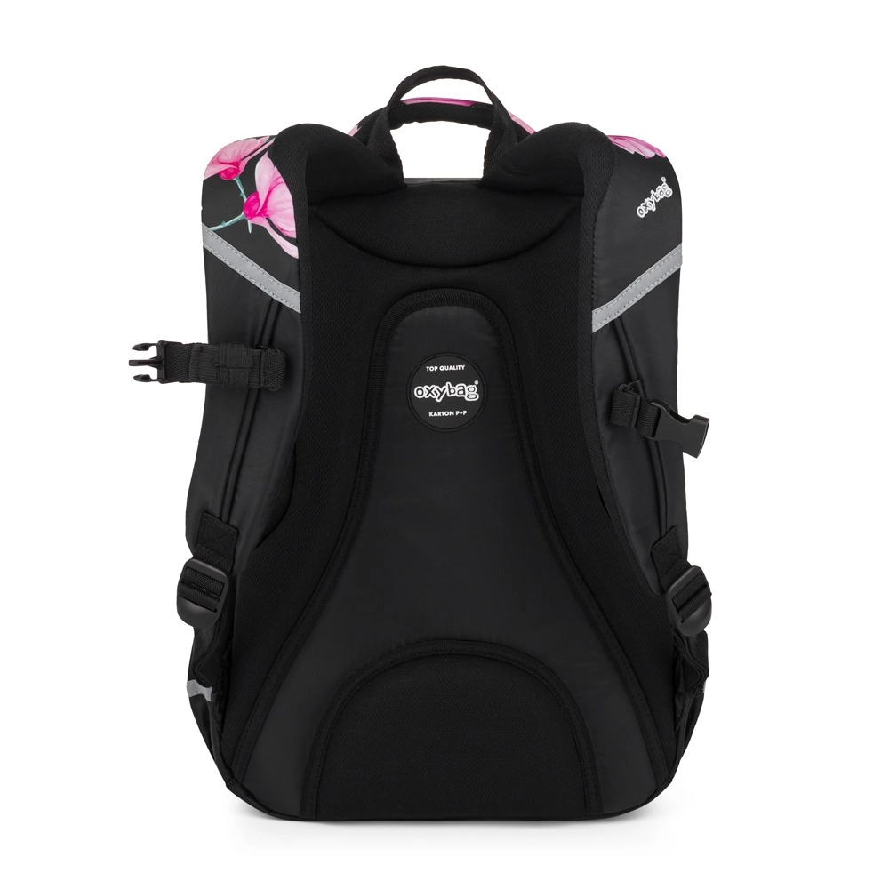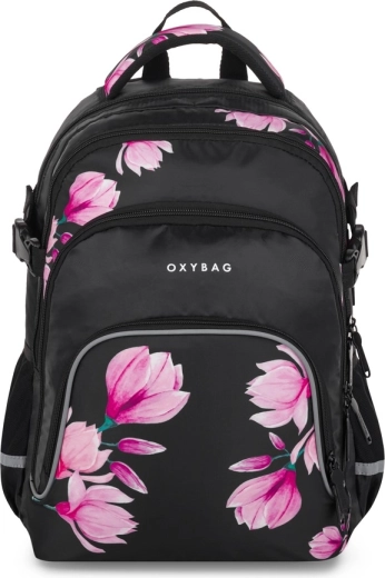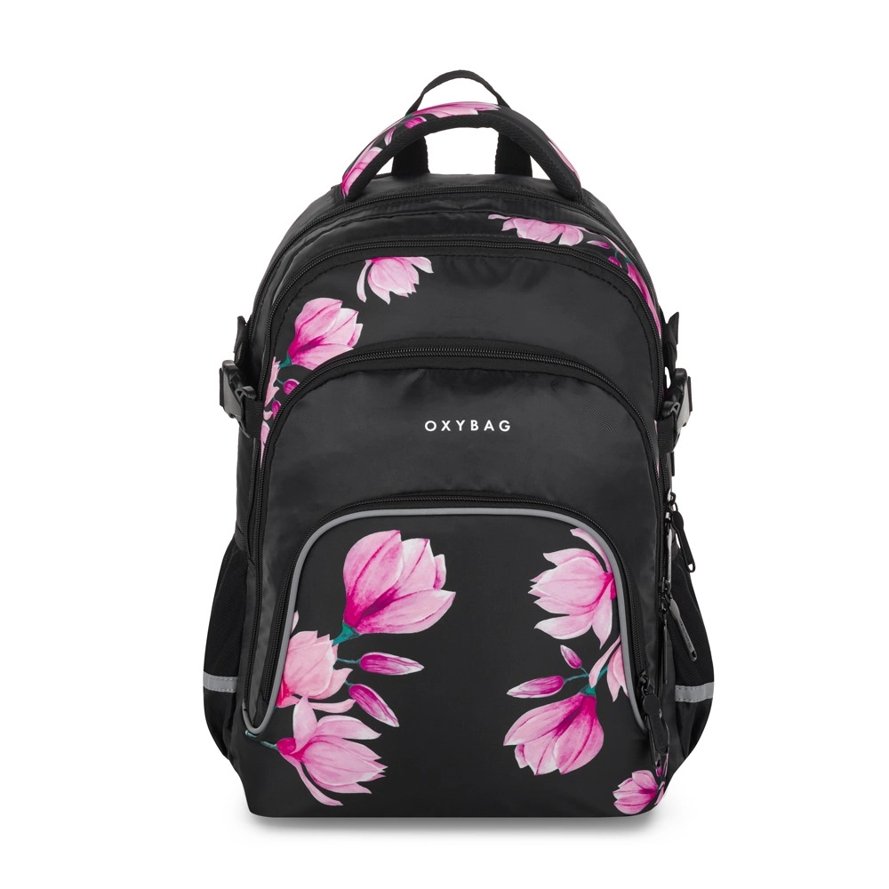 De OXYBAG Scooler Magnolia is een betrouwbare partner voor school en vrije tijd. Drie ruime compartimenten bieden plaats aan boeken, schriften en lunch; voorvakken met organizer houden kleine spullen geordend en het binnenvak beschermt je laptop. Het zijvak is ideaal voor een drinkfles, terwijl een praktische houder voor sleutels of pas tijd bespaart bij het dagelijkse zoeken.