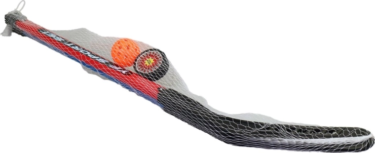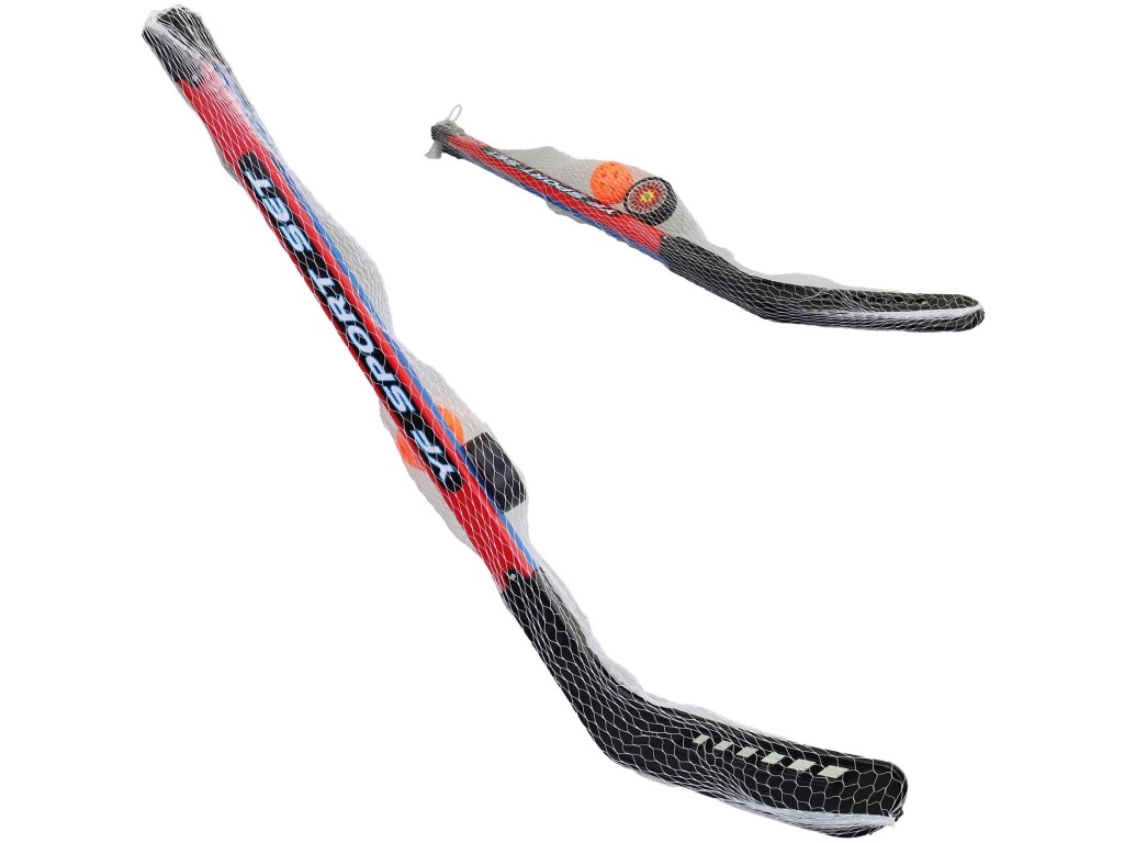 Lichte en duurzame hockeyset voor kinderen met een sticklengte van 90 cm, ideaal voor de eerste stappen in street- en floorballspel. Bevat zowel een puck als een balletje voor verschillende trainingsvormen, een praktische draagnet en een veilige kunststof uitvoering geschikt vanaf 3 jaar.