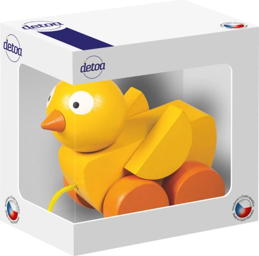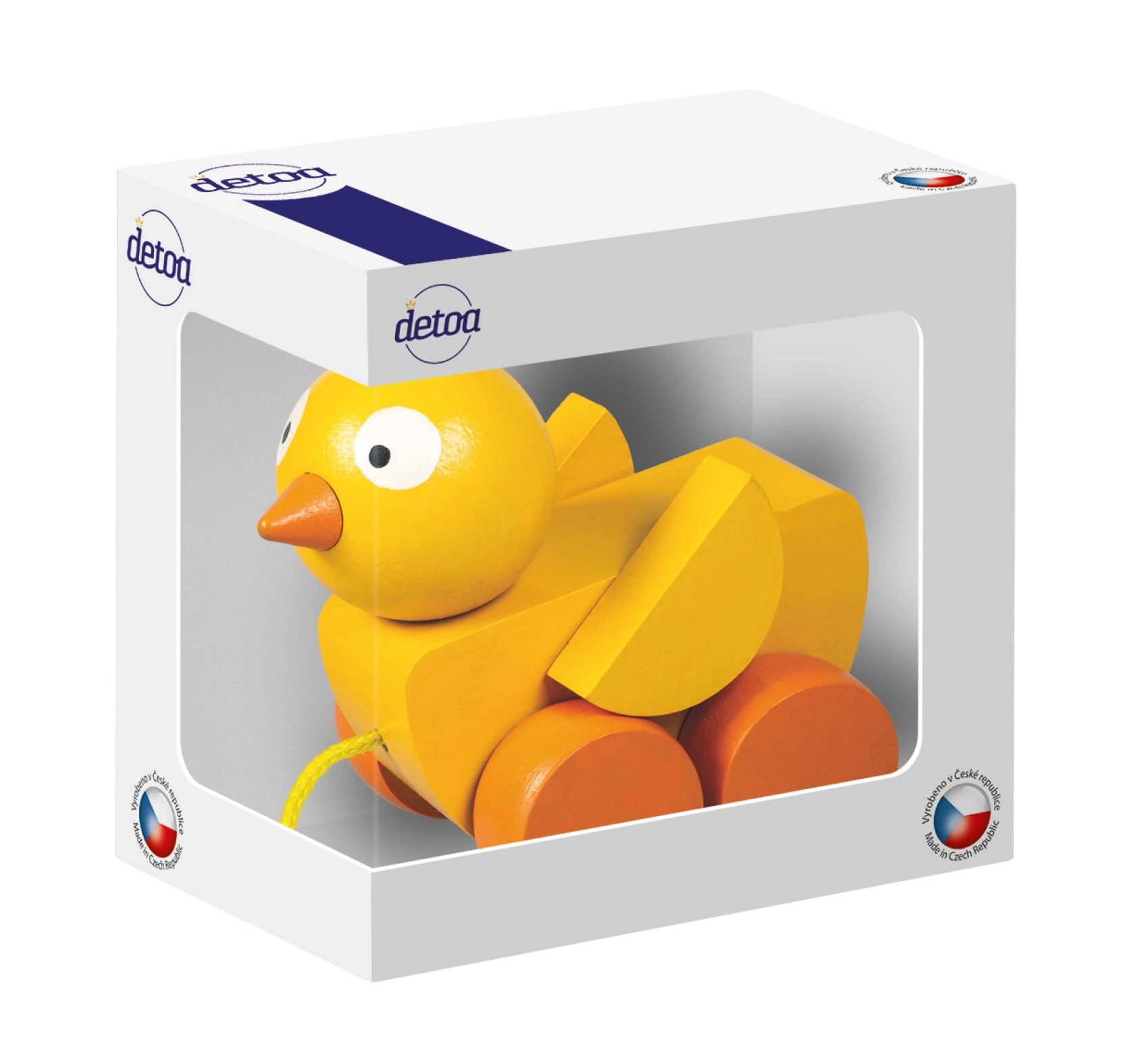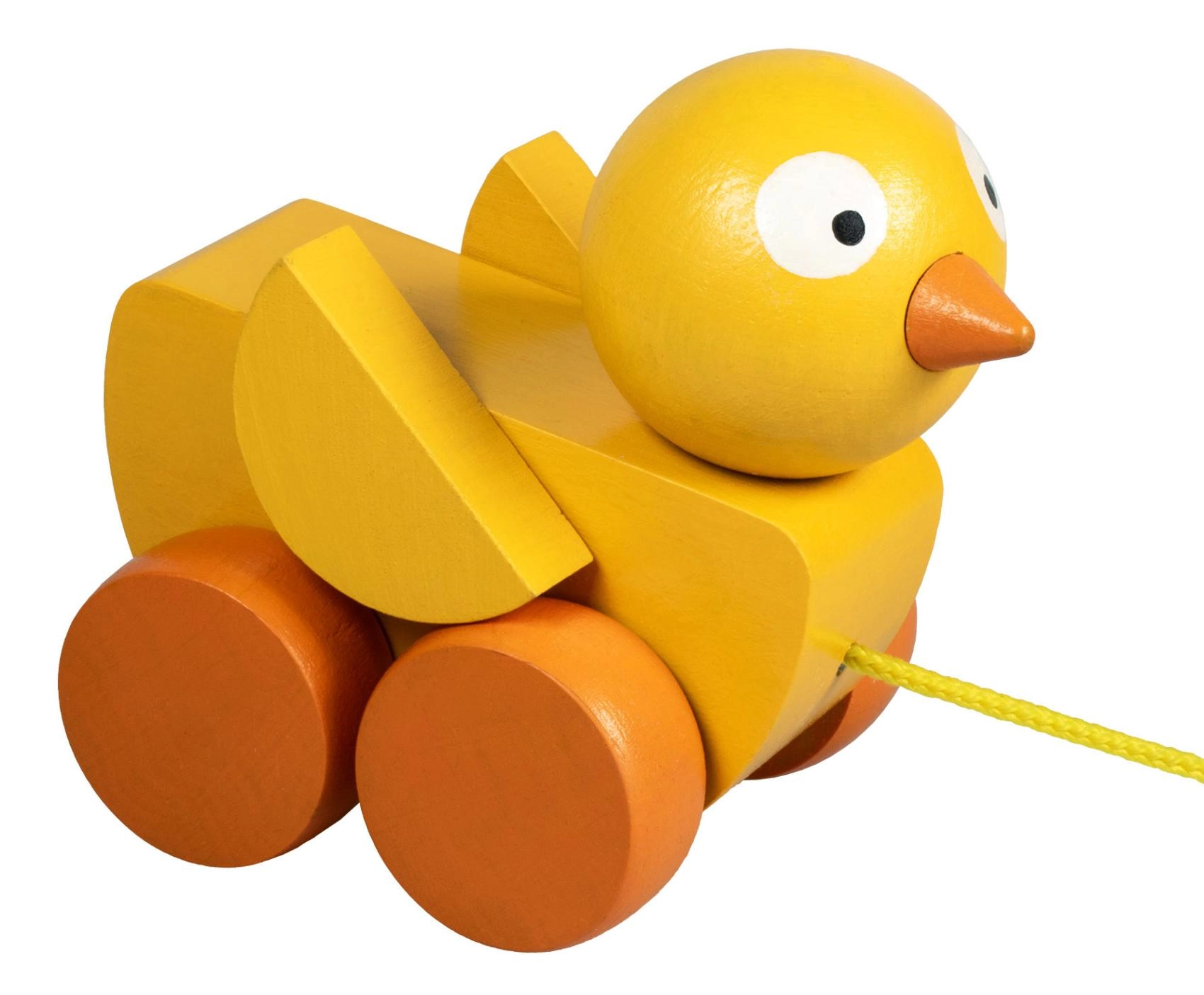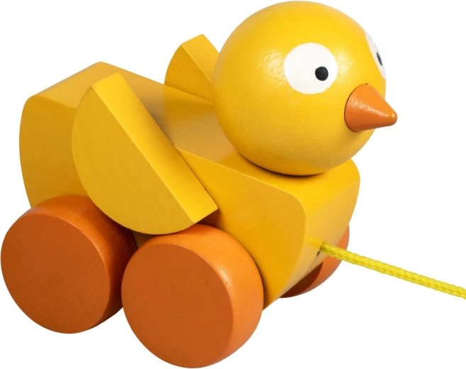 Het houten trek-kuikentje is een klassiek speelgoed dat kinderen motiveert om te bewegen en de wereld te ontdekken. Dankzij de compacte afmetingen ligt het goed in de hand en is het perfect voor spelen thuis en de eerste wandelingen door het huis.