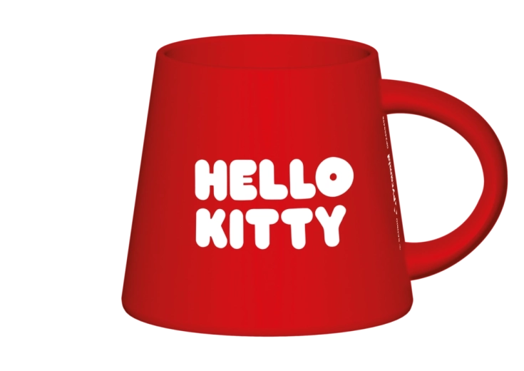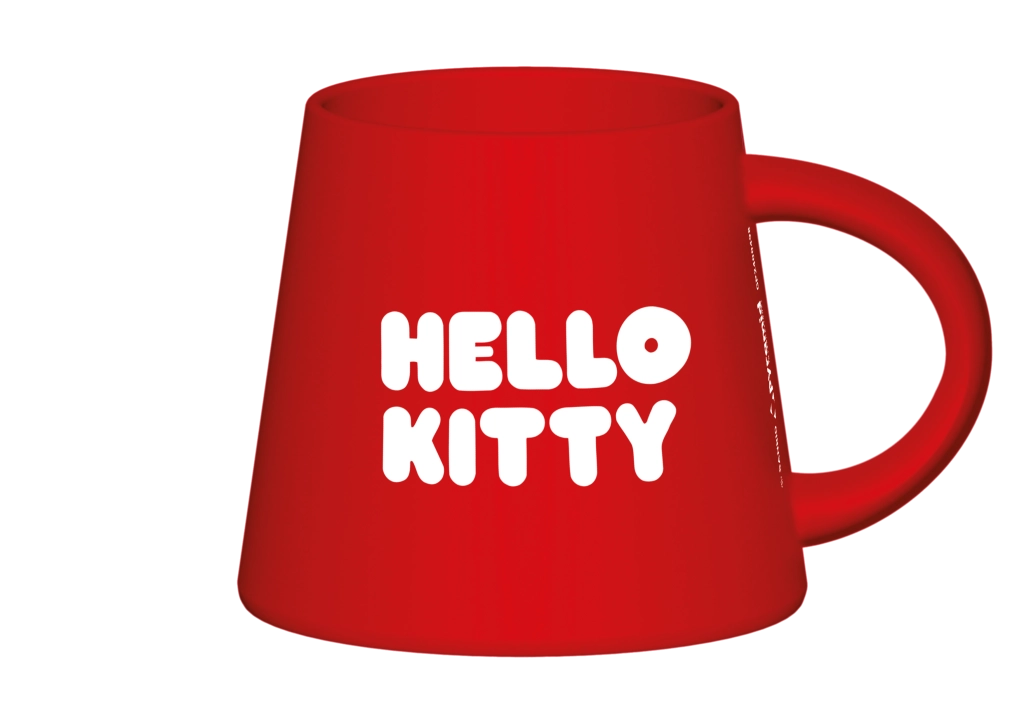Dankzij de ongewone vorm, die naar beneden toe licht uitloopt, ligt hij comfortabel in de hand en oogt hij modern. Het gladde oppervlak en de verzadigde kleuren benadrukken de hoogwaardige digitale bedrukking, terwijl de achterkant is versierd met de tekst HELLO KITTY voor een duidelijke merkidentificatie.