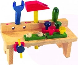 De houten werktafel met gereedschap van Detoa is een uitstekende basis voor kleine klusjesmannen. Kinderen leren de basisvaardigheden in het omgaan met gereedschap, trainen de oog-handcoördinatie en ontwikkelen logisch denken tijdens het schroeven en monteren.