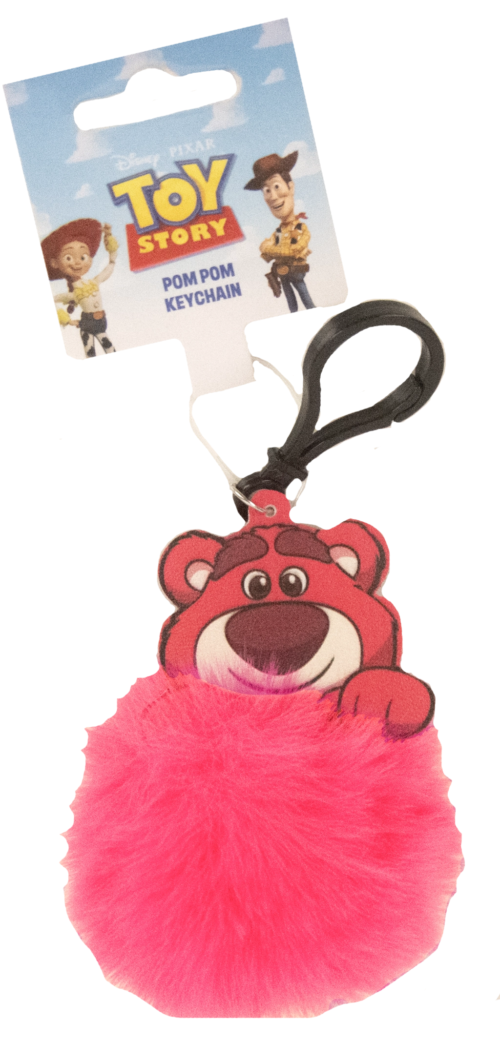Geef je dagelijkse stijl een boost met deze schattige én praktische sleutelhanger met Lotso uit de geliefde TOY STORY-reeks. De platte kunststof kop in 3D-stijl en de luchtige roze pompon zorgen voor een speelse en subtiele touch aan je sleutels, rugzak of tas.