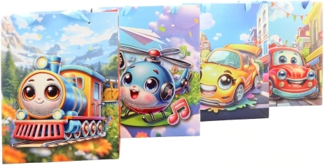 - Vrolijk motief – kleurrijke vervoermiddelen voor een feestelijke cadeau-overhandiging