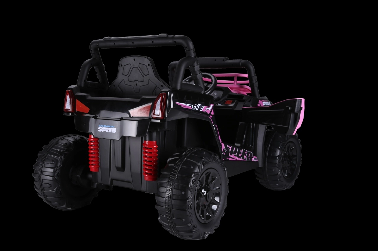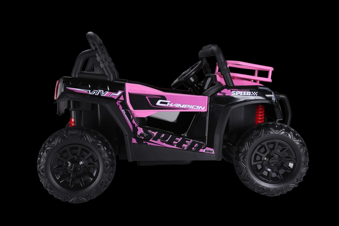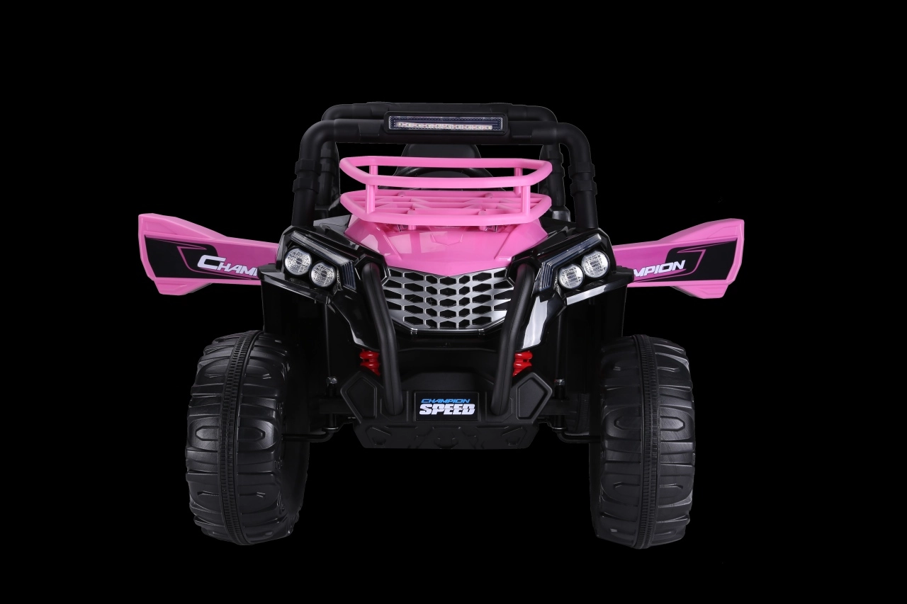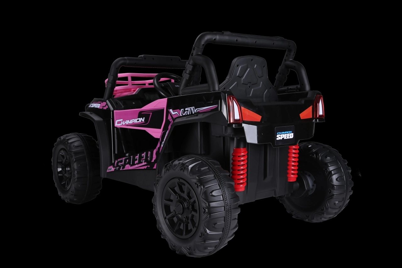 De UTV Lift is een robuust elektrisch kinderfahr voertuig voor avontuurlijke ritten offroad en in de tuin. Twee krachtige motoren van 2×200 W en een accu van 24 V 5 Ah zorgen voor een vloeiende aandrijving en een groter bereik, terwijl de soepele start het comfort en de veiligheid van de jonge bestuurder beschermt. De voorste LED-lampen verhogen de zichtbaarheid en geven een aantrekkelijke look.