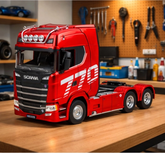 - Realistisch SCANIA-design – gedetailleerde cabine, chassis en koppelschotel voor oplegger