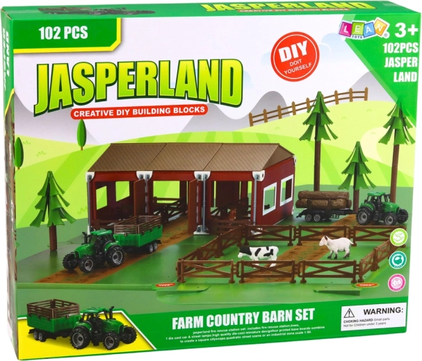 Ontdek de grote boerderij-bouwset waarmee kinderen hun eigen schuur, bedden en omheiningen bouwen, 2 tractoren met aanhangers inzetten en voor dieren zoals een koe, een geit en een paard zorgen. De set met 102 delen stimuleert creativiteit, verbeeldingskracht en fijne motoriek en zorgt voor urenlang thematisch spel rond het leven op het platteland.