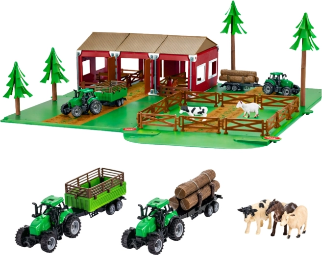 Twee tractoren en twee aanhangwagens maken het mogelijk om hout en andere lading te vervoeren en boerderijwerk realistisch na te bootsen. De gedetailleerde afwerking van gebouwen, hekken en tractorcabines van hoogwaardige kunststof zorgt voor duurzaamheid en een aantrekkelijke uitstraling.