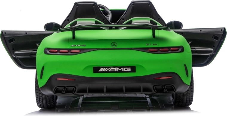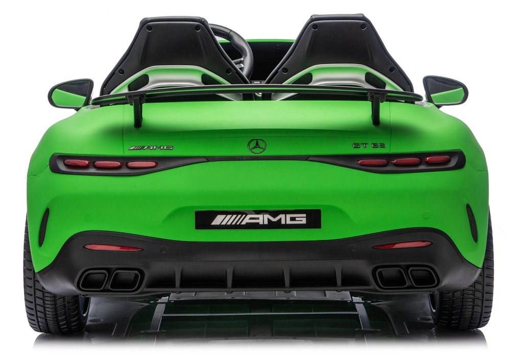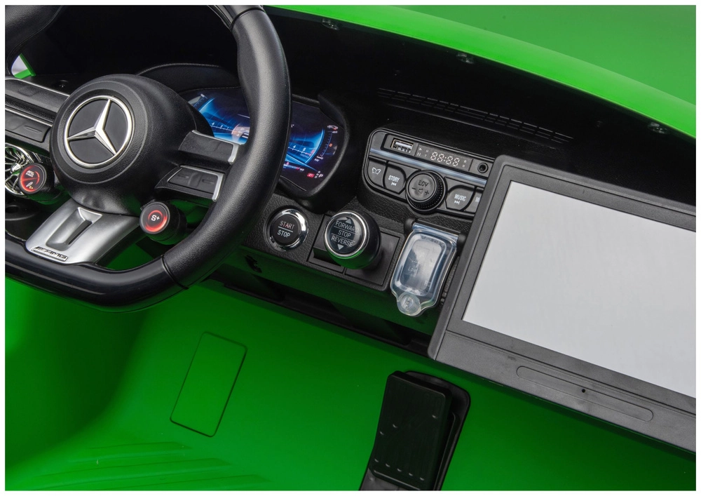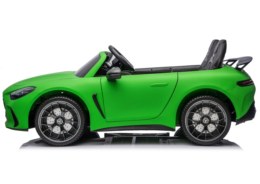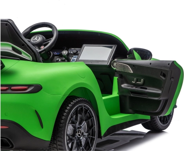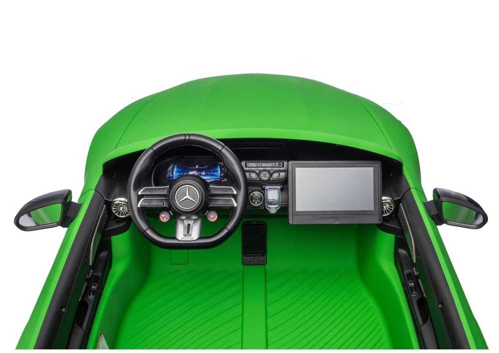 Stijlvolle elektrische kinderauto MERCEDES-AMG GT63 in matgroen biedt een echte sportieve rijervaring voor jonge bestuurders. Met een krachtige 24V-aandrijving, realistisch design met openslaande deuren, comfortabele twee zitplaatsen en een gedetailleerd interieur met multimedia voor nog meer plezier.
