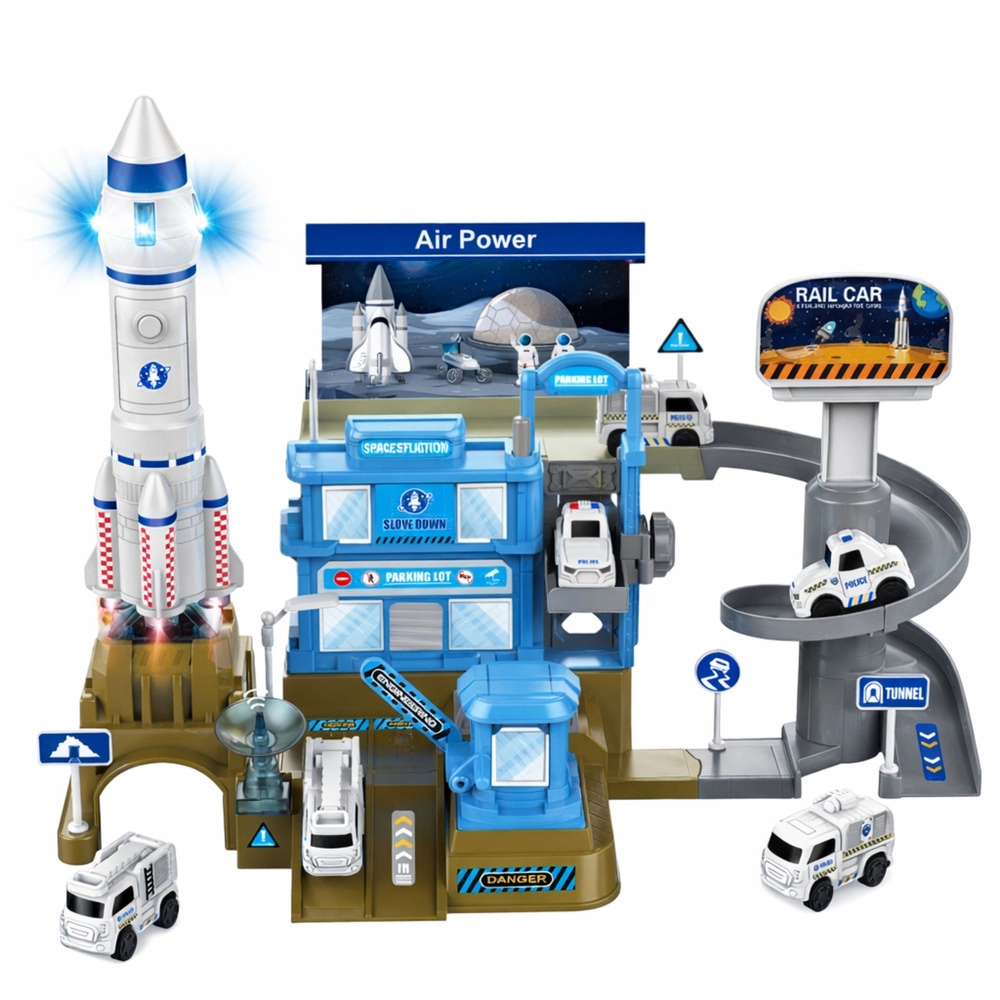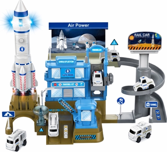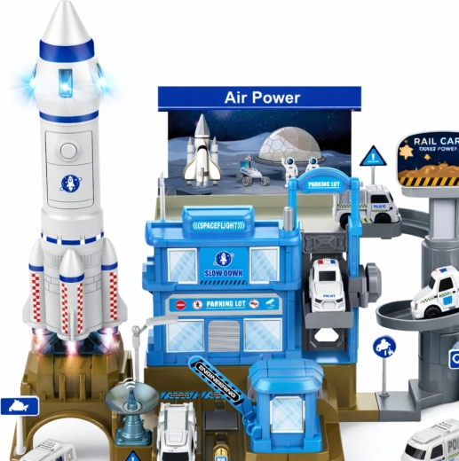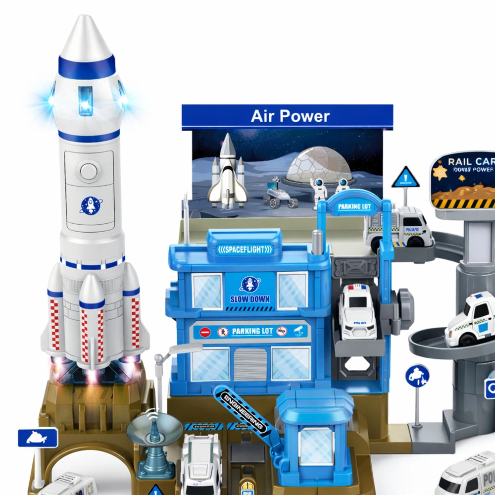 Het middelpunt van de set is de raket met licht en geluid (voeding 2× AAA), die een echte lancering simuleert. Hoogwaardige kunststof, modern ruimtelijk design en tal van accessoires (voertuigen, markeringen, poorten) maken dit speelgoed tot een geweldig cadeau voor jonge fans van technologie en de ruimte. Het product voldoet aan de Europese veiligheidsnormen CE.