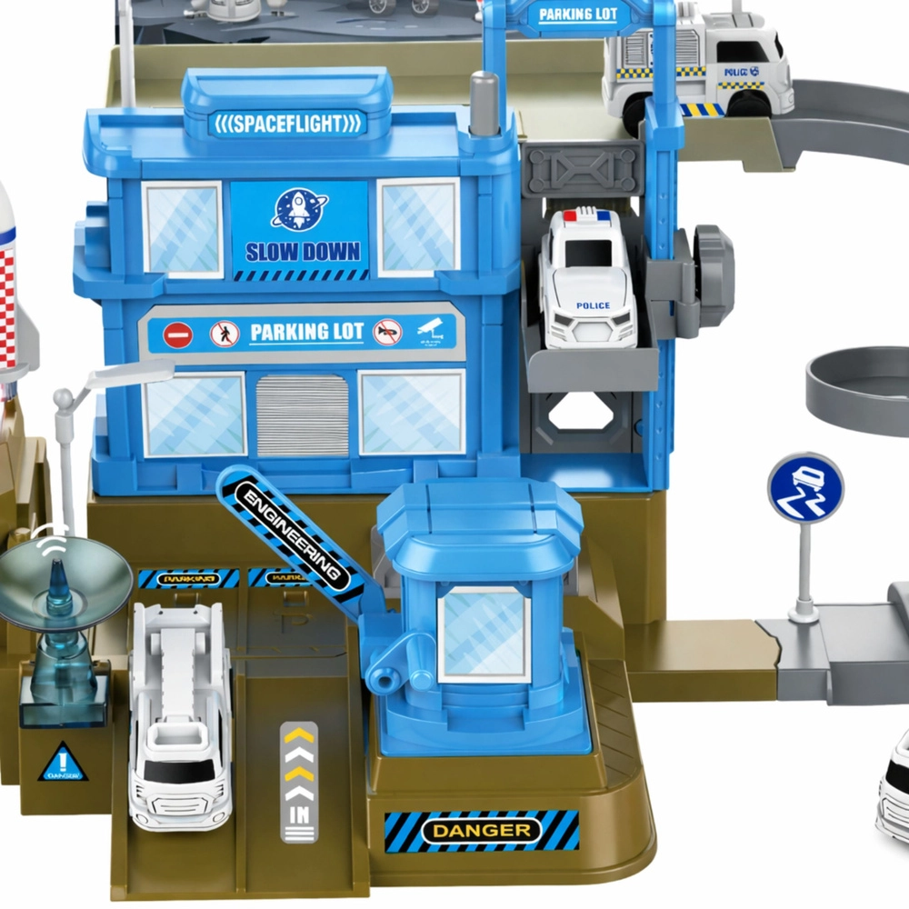 De spiraalhelling, poorten en parkeervakken maken vloeiende ritten, manoeuvreren en realistische scènes van een ruimtestation mogelijk.