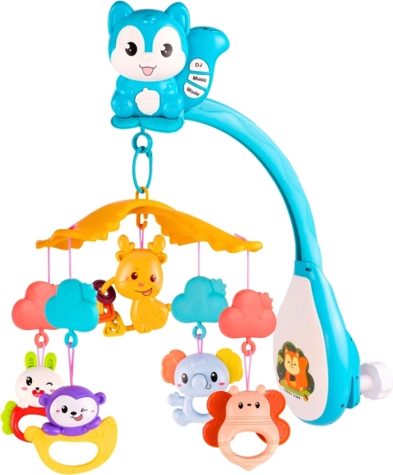 Deze multifunctionele mobiel creëert een rustige sfeer voor gemakkelijk inslapen en stimuleert tegelijk de zintuigen van de baby. De projector in de vorm van een eekhoorn projecteert kleurrijke patronen op het plafond, terwijl de vloeiende 360°-rotatie en zachte melodieën de aandacht van het kind trekken en helpen te kalmeren.