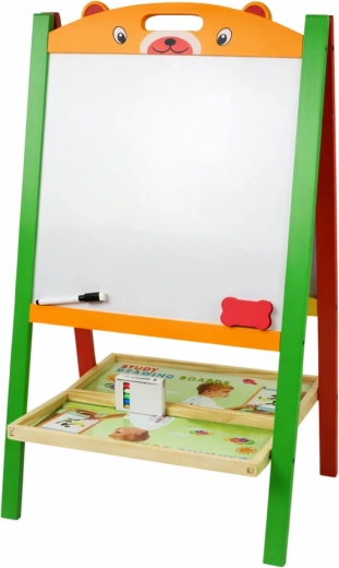 Ontdek een leuke manier van leren met dit houten dubbelzijdige 2-in-1 bord – aan de ene kant een magnetisch whiteboard voor schrijven met een uitwisbare stift en het leggen van letters en cijfers, aan de andere kant een klassiek krijtbord om te tekenen. De stabiele houten constructie, de uitgebreide accessoires en spelenderwijs leren ondersteunen de fijne motoriek, creativiteit en de eerste reken- en taalvaardigheden.