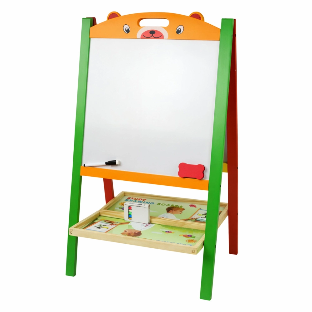 Dit veelzijdige leermiddel verbindt creatief spel met educatie. Kinderen kunnen schrijven, tekenen, woorden leggen met magnetische letters en rekenen oefenen met magnetische cijfers en tekens. De dubbelzijdige uitvoering maakt het gemakkelijk om snel van activiteit te wisselen en de aandacht en enthousiasme vast te houden.