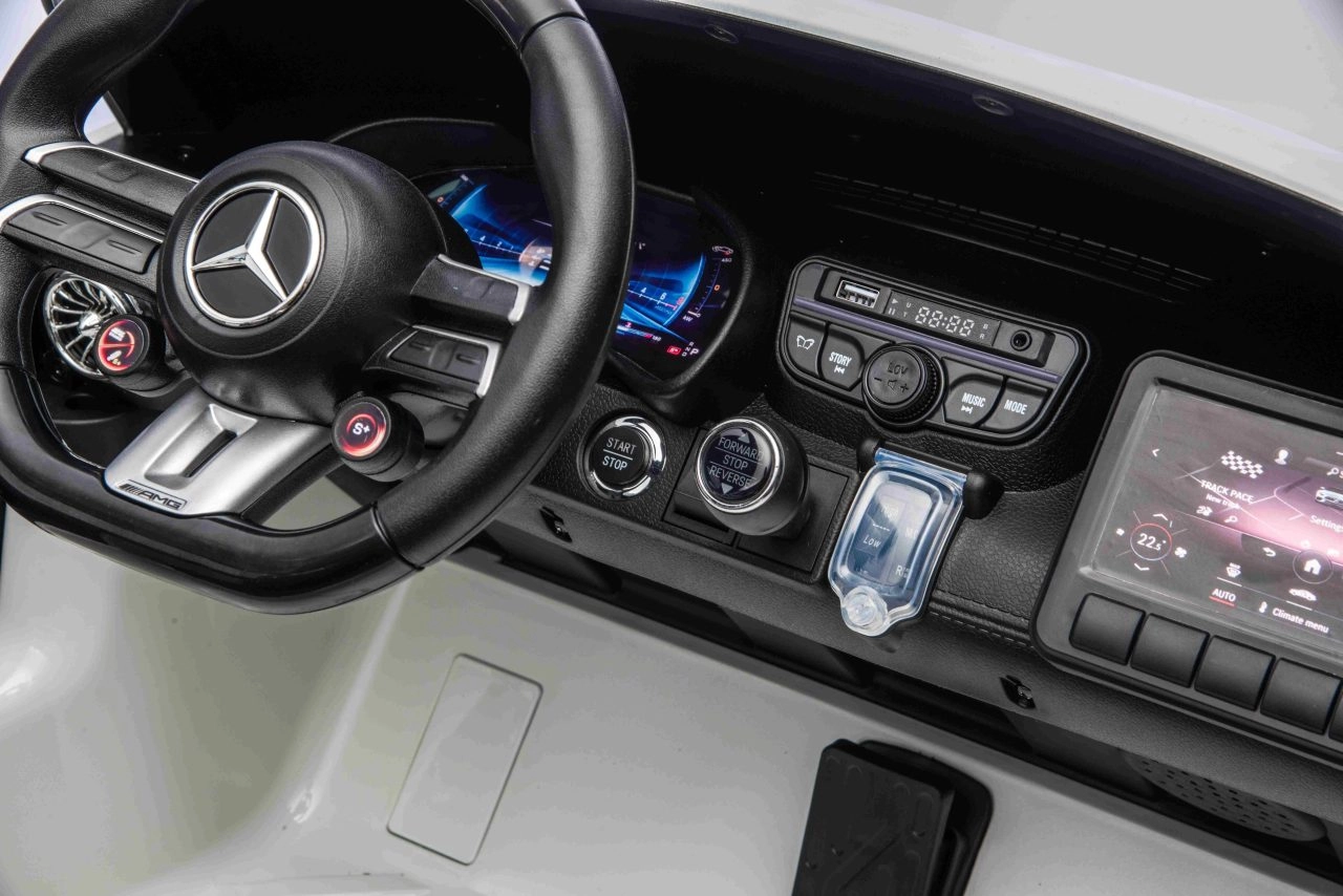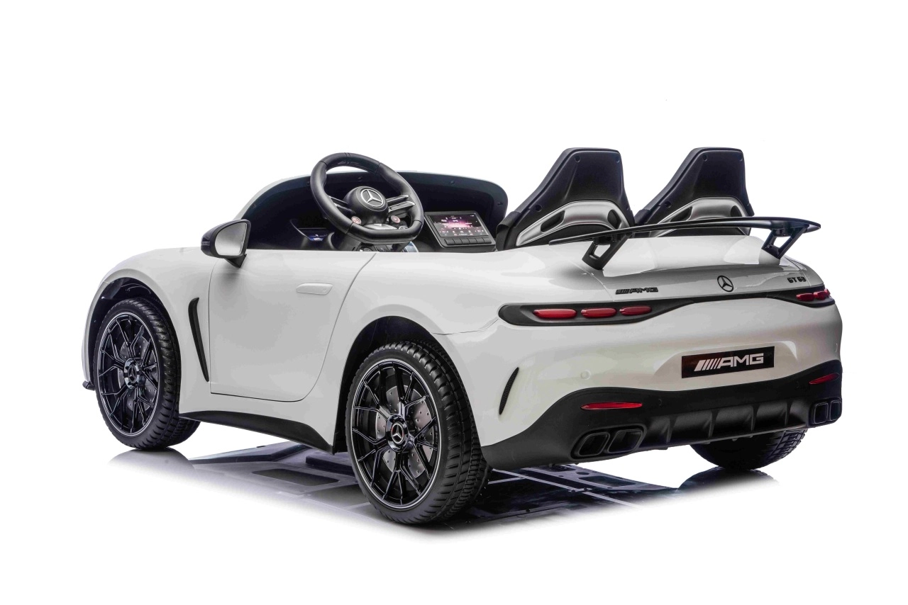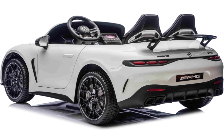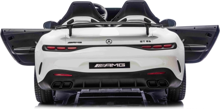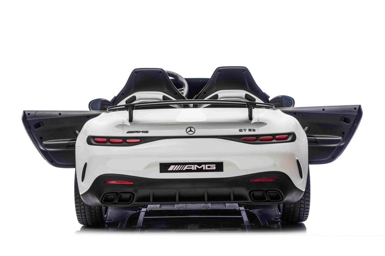 De Mercedes-Benz GT63 AMG in kinderuitvoering biedt topprestaties en premium afwerking. Dankzij de 4x200 W aandrijving en de 24 V / 7 Ah-accu genieten kinderen van dynamisch maar veilig rijden met een soepele start. De royale carrosserie (146 × 86 × 57 cm) biedt een dubbele zitbank van eco-leer met veiligheidsgordels en te openen deuren voor eenvoudig instappen.