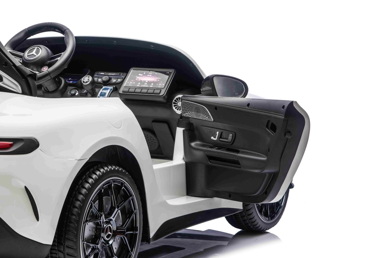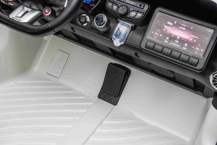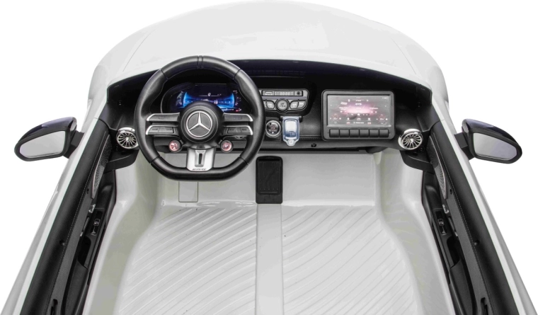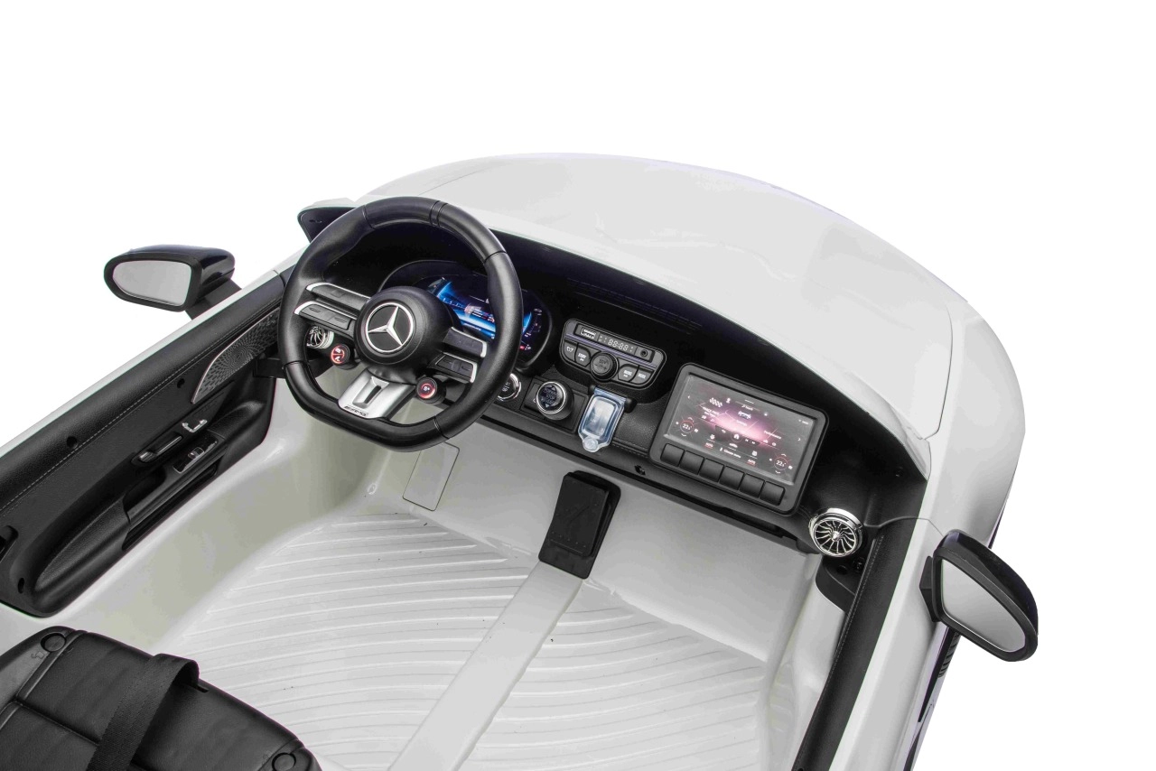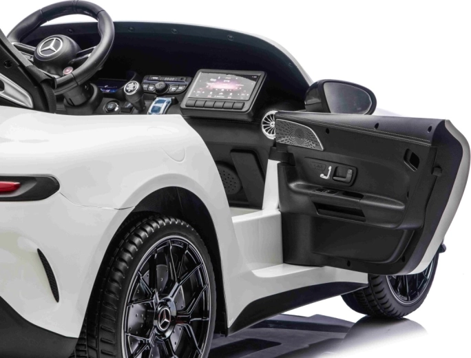 De Mercedes-Benz GT63 AMG in kinderuitvoering biedt topprestaties en premium afwerking. Dankzij de 4x200 W aandrijving en de 24 V / 7 Ah-accu genieten kinderen van dynamisch maar veilig rijden met een soepele start. De royale carrosserie (146 × 86 × 57 cm) biedt een dubbele zitbank van eco-leer met veiligheidsgordels en te openen deuren voor eenvoudig instappen.