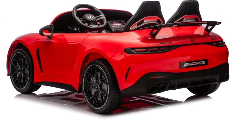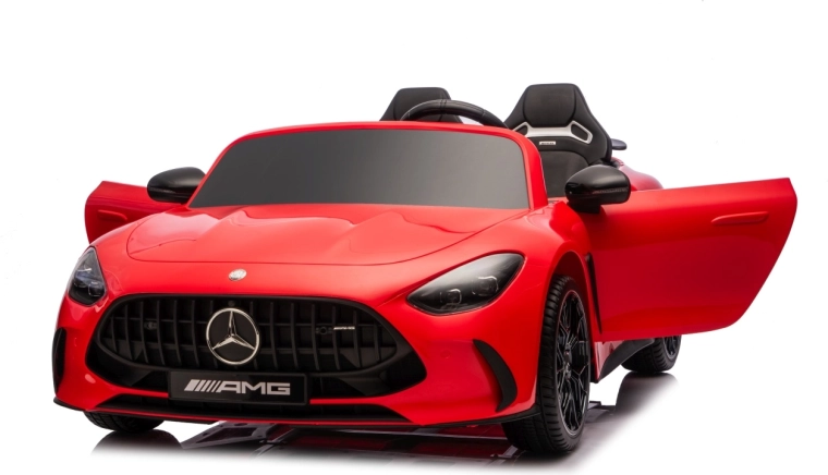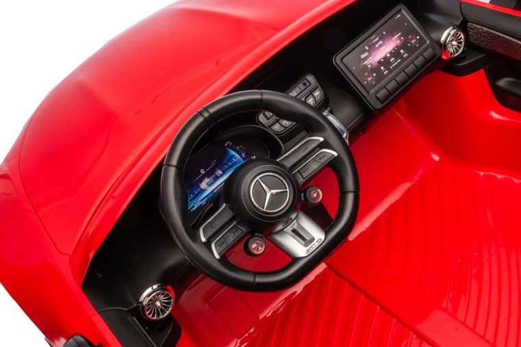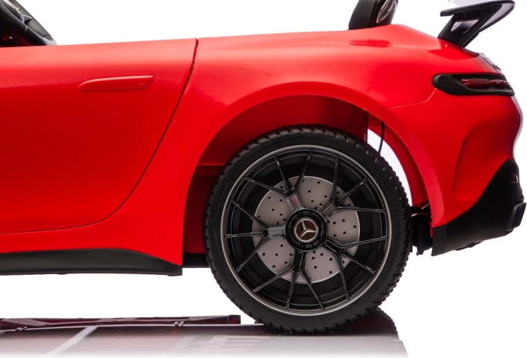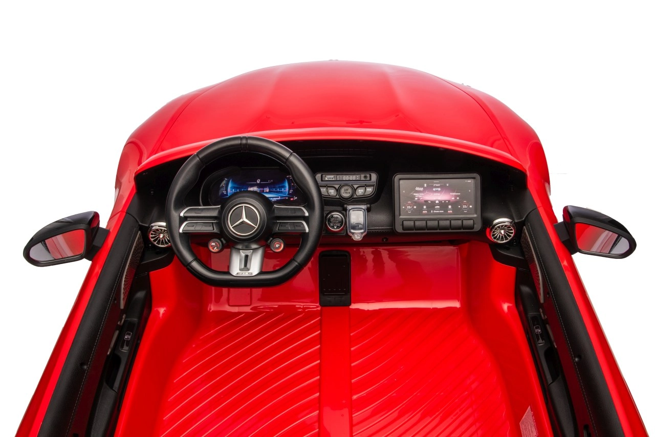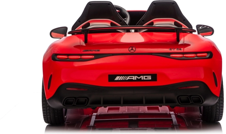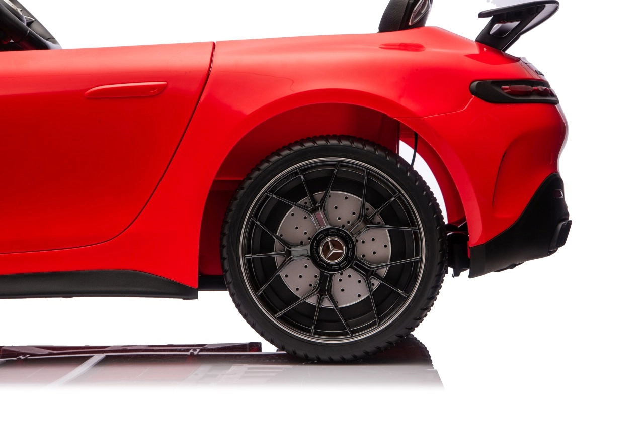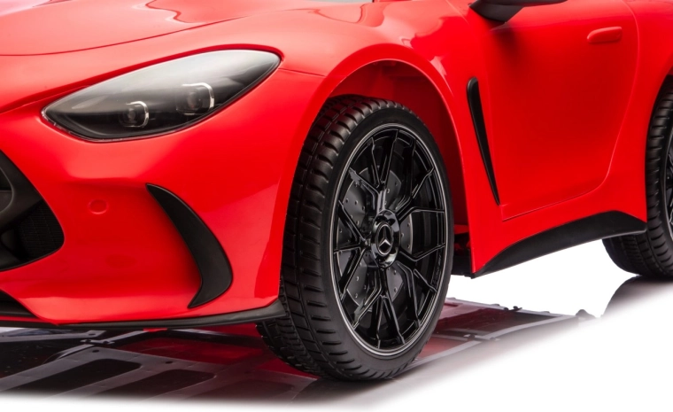 Vervul de kinderdroom van een sportwagen met het gelicenseerde uiterlijk van de MERCEDES‑AMG GT63. Dit robuuste model kan dankzij de vierwielaandrijving 4x200 W en de krachtige 24V accu zelfs met twee kinderen rijden. EVA‑schuimbanden van 27×9 cm zorgen voor een stille, comfortabele rit, de achterste schokdempers verhogen het comfort op oneffenheden en de vloeiende soft start garandeert wegrijden zonder schokken.