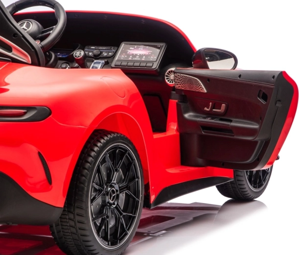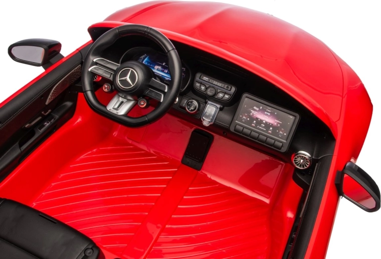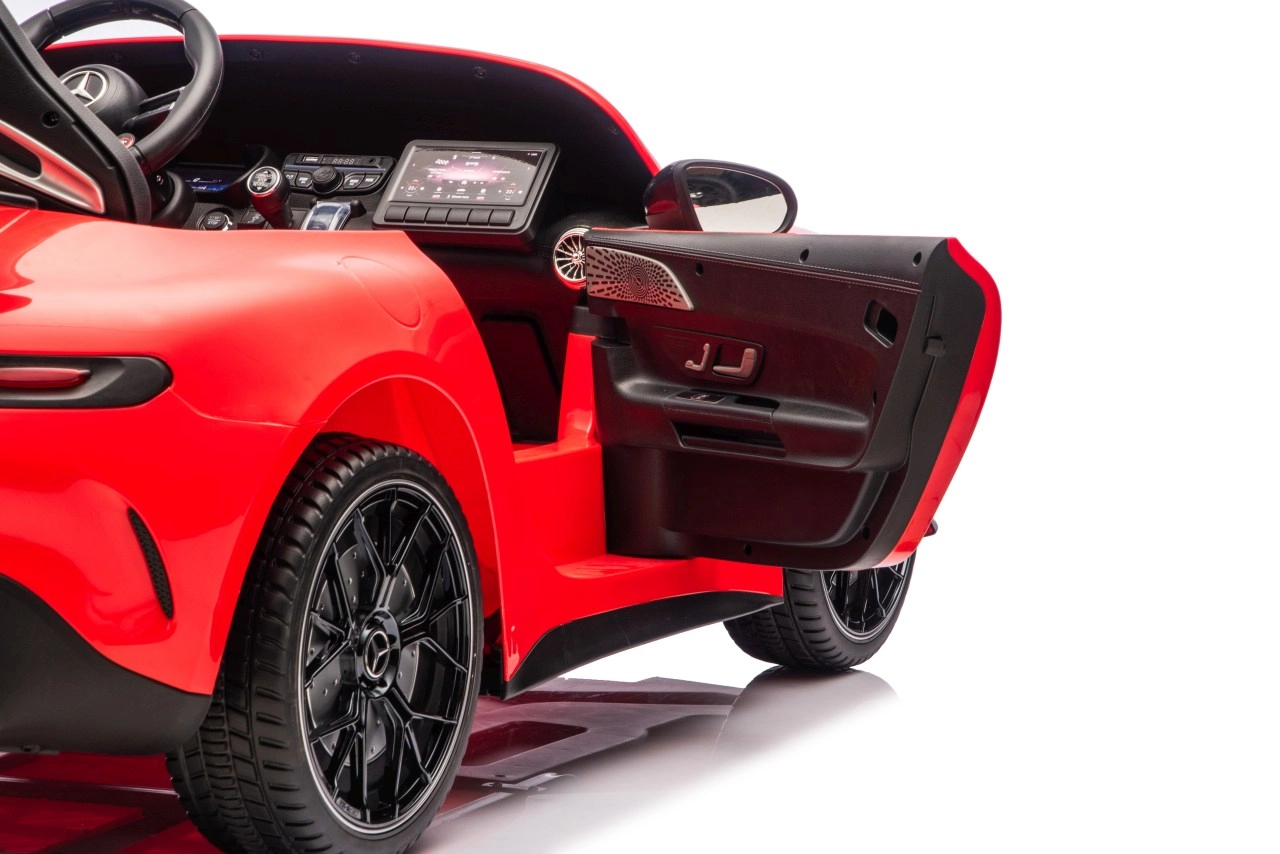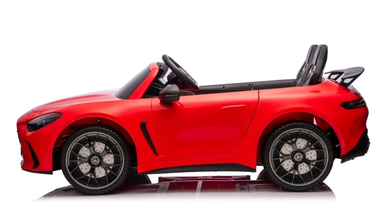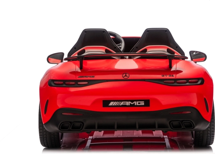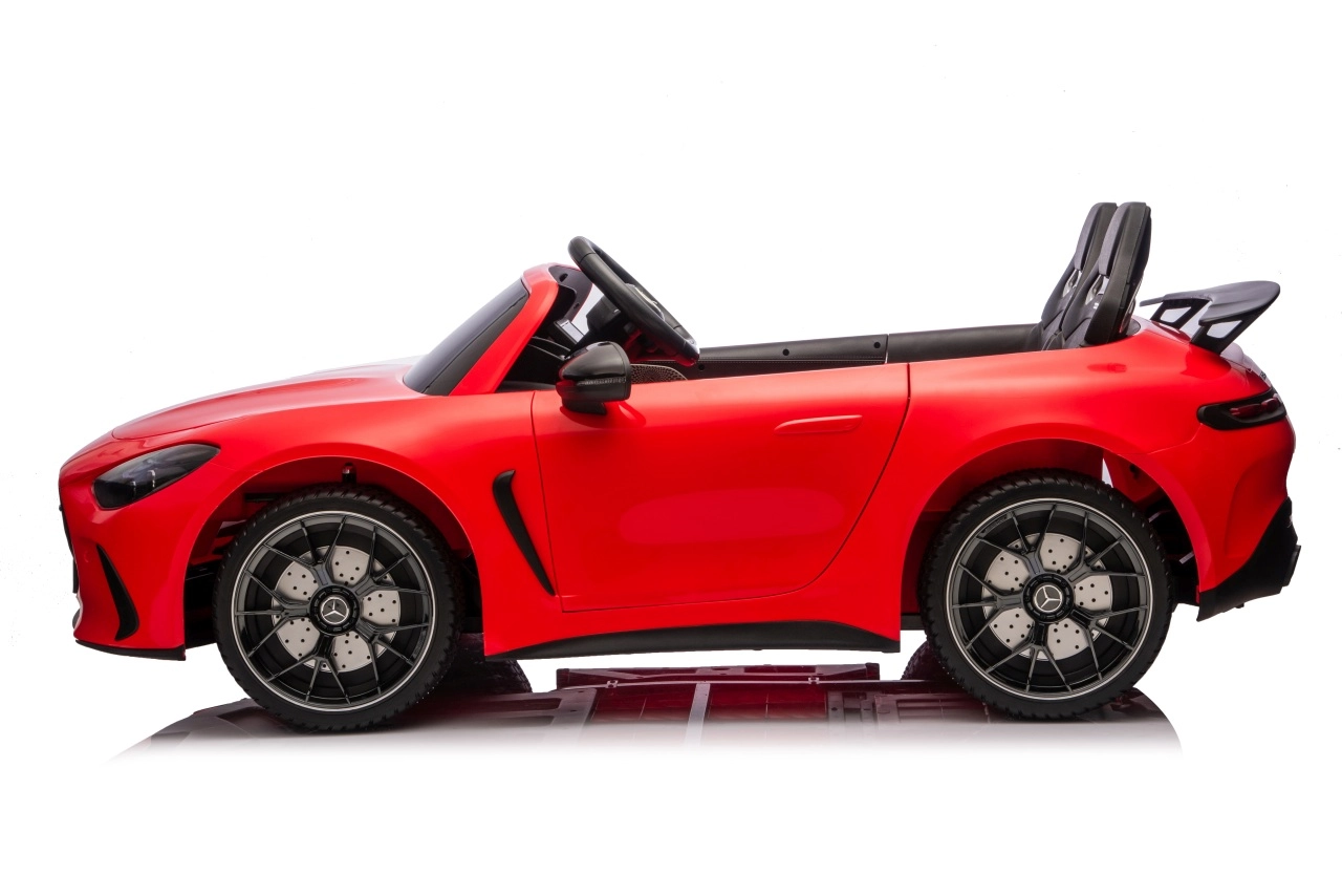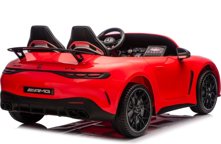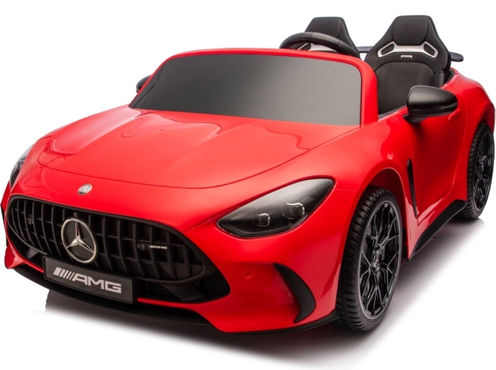 Vervul de kinderdroom van een sportwagen met het gelicenseerde uiterlijk van de MERCEDES‑AMG GT63. Dit robuuste model kan dankzij de vierwielaandrijving 4x200 W en de krachtige 24V accu zelfs met twee kinderen rijden. EVA‑schuimbanden van 27×9 cm zorgen voor een stille, comfortabele rit, de achterste schokdempers verhogen het comfort op oneffenheden en de vloeiende soft start garandeert wegrijden zonder schokken.