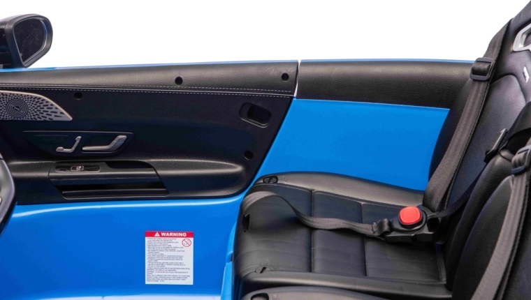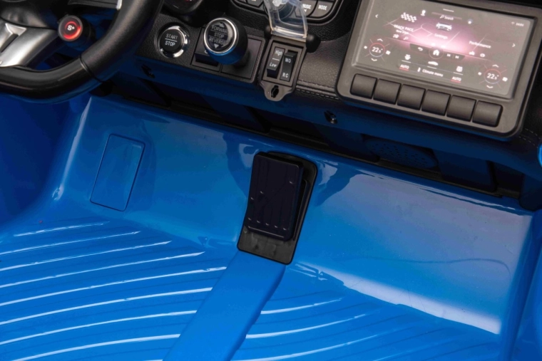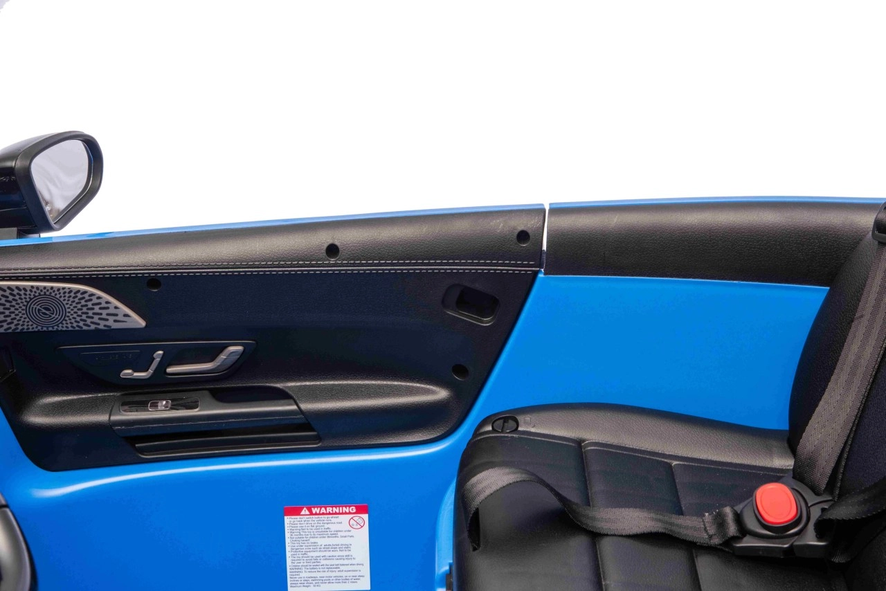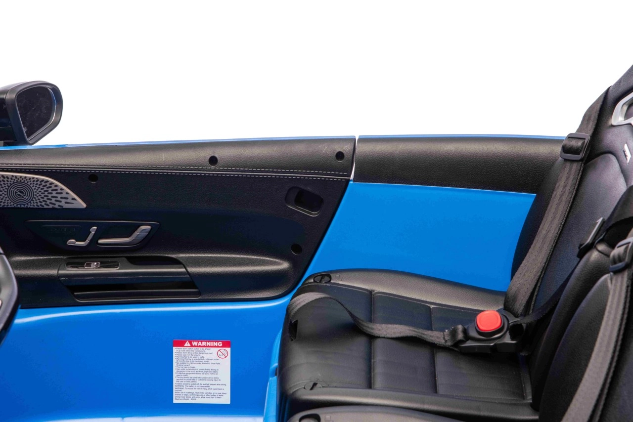 Het interieur verrast met twee zitplaatsen van eco-leer met veiligheidsgordels, een realistisch dashboard en een multimediapaneel met MP3, USB, Bluetooth, AUX en FM-radio. Dankzij de openende portieren, LED-verlichting voor en achter en de soft start-functie is de rit veilig en maximaal realistisch. Ouders houden alles onder controle dankzij de 2,4 GHz afstandsbediening met drie snelheden en nood-STOP.
