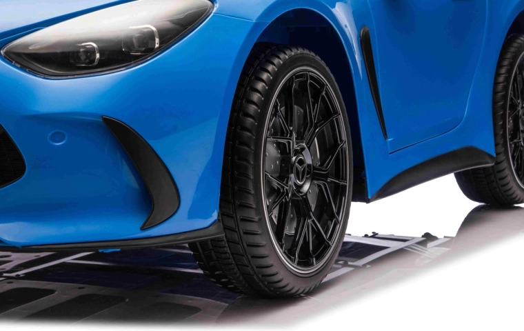 De droom van kleine chauffeurs: de elektrische kinderauto MERCEDES-BENZ GT 63 AMG in elegant blauw combineert een sportieve look met krachtige prestaties en topuitrusting. Vier motoren van elk 200 W en een 24 V / 7 Ah accu garanderen een soepele rit, terwijl achtervering en zachte EVA-wielen 27×9 cm zorgen voor comfort, ook op oneffen terrein.