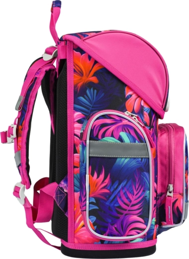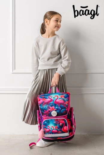 De complete schooluitrusting in het uniforme design FLAMINGO’S maakt zowel leerlingen als ouders blij. De ergonomische boekentas met het verstelbare ERGO ADJUSTABLE SYSTEM groeit met het kind mee, heeft een gewatteerde rug, verstelbare schouder-, borst- en zijriemen en een betrouwbare magnetische Fidlock-sluiting voor eenvoudig en snel openen. Waterafstotende materialen, een stabiele bodem en reflecterende elementen verhogen de duurzaamheid en veiligheid tijdens het dagelijks gebruik.