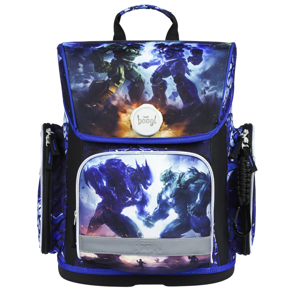 De BAAGL schoolset Robots biedt kinderen alles wat ze nodig hebben voor school en clubjes – in een uniforme look met een robotgevecht-motief. Het hoofditem is een stevige, lichte en ergonomische schooltas met het verstelbare ERGO ADJUSTABLE SYSTEM, die meegroeit met het kind en helpt het gewicht correct te verdelen. De magnetische Fidlock-sluiting maakt bliksemsnel openen en automatisch sluiten mogelijk.