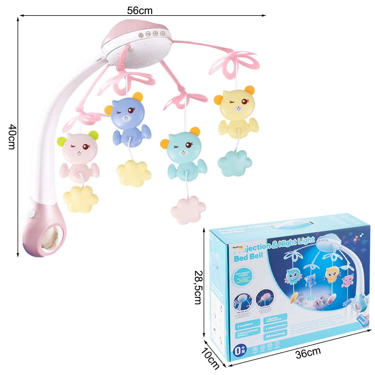 Creëer voor je kindje een veilige en rustgevende sfeer om te slapen. De mobiel met projector toont zachte lichteffecten en speelt een brede selectie aan melodieën en natuurgeluiden die helpen kalmeren en het inslapen vergemakkelijken. Met de afstandsbediening kunnen ouders eenvoudig de modi wijzigen zonder de baby te storen.