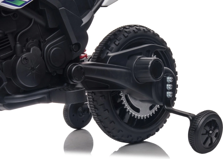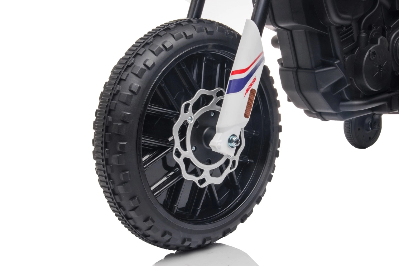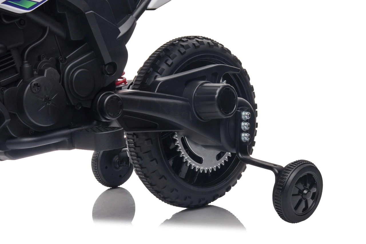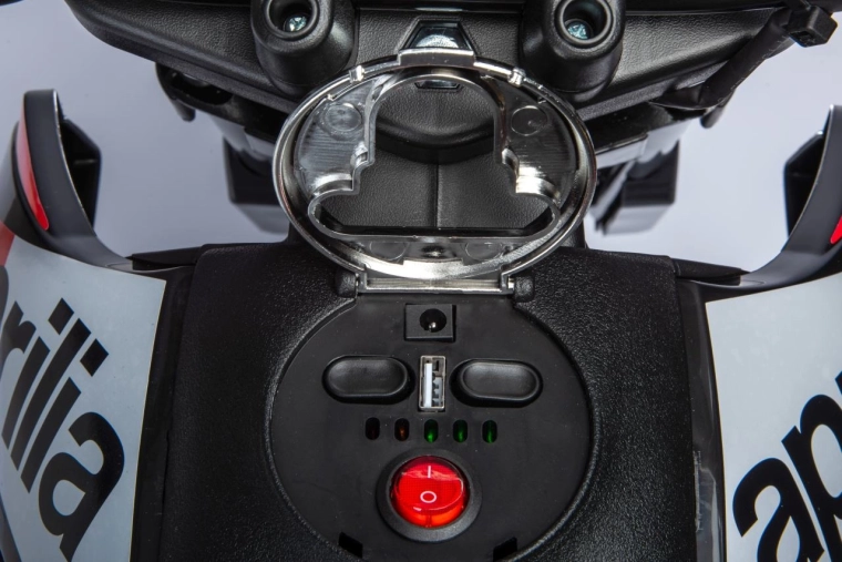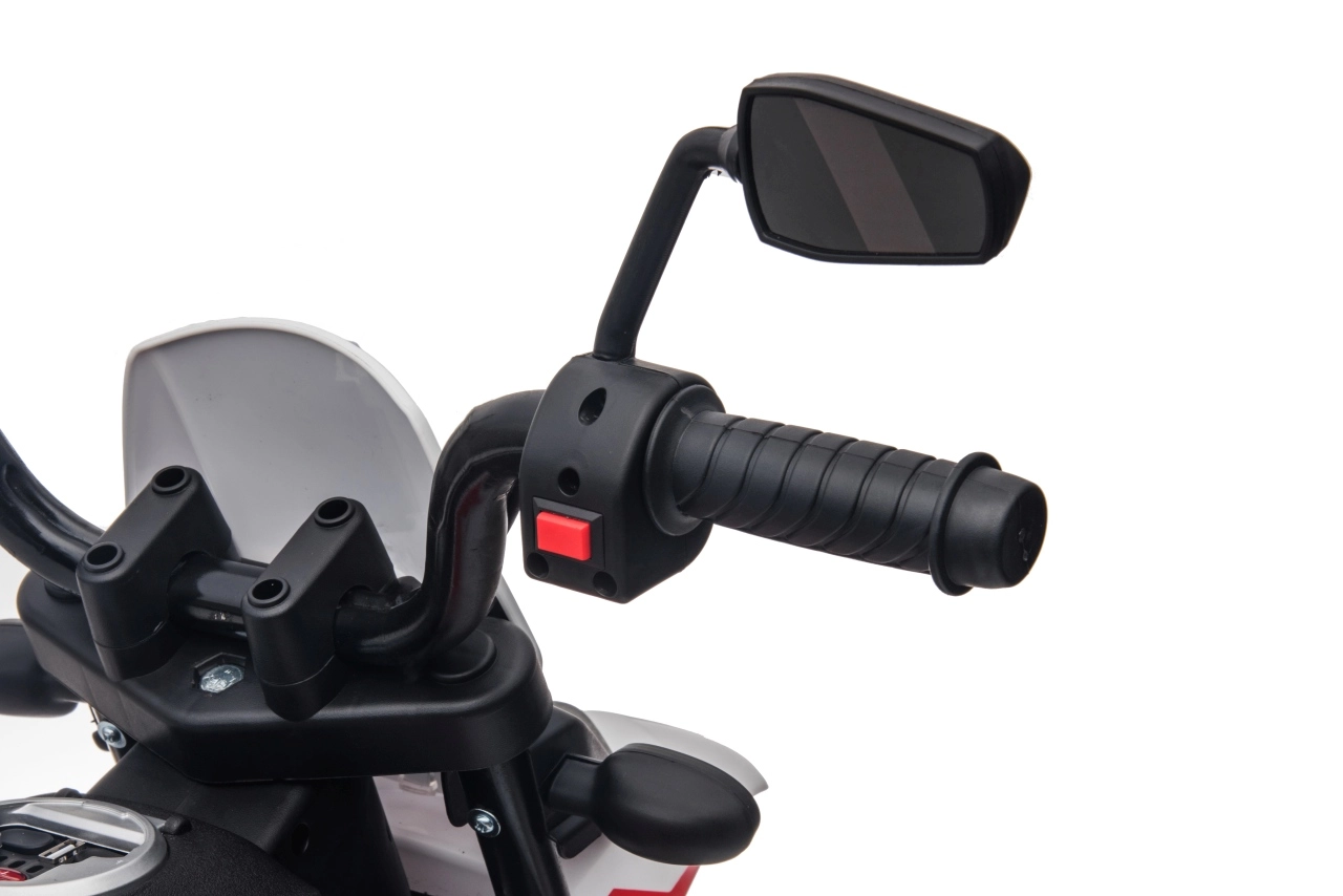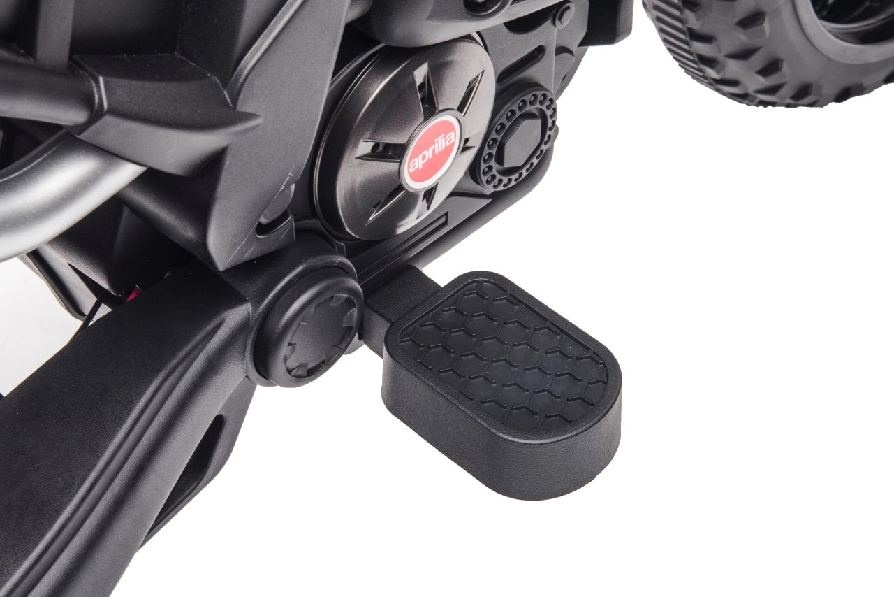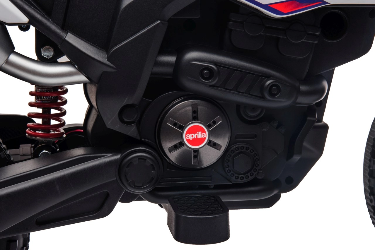 De stijlvolle elektrische kindermotor APRILIA RX verrukt jonge rijders met zijn realistische looks, krachtige 2x35 W aandrijving en veilige zijwieltjes. Voorzien van een 12 V 7 Ah accu voor langere ritten, EVA-wielen voor stille en comfortabele werking, LED-koplampen en een multimedia audiopaneel met MP3/USB/Bluetooth. Het comfortabele zadel van eco-leer en de achterste veervering zorgen voor comfort, ook op oneffen terrein.
