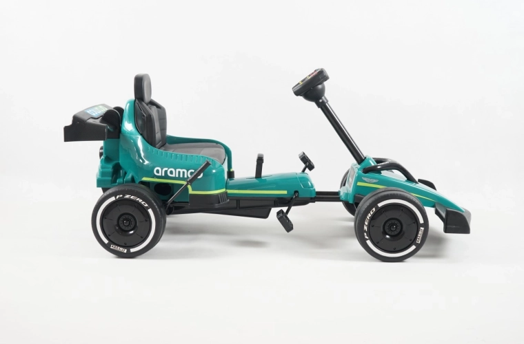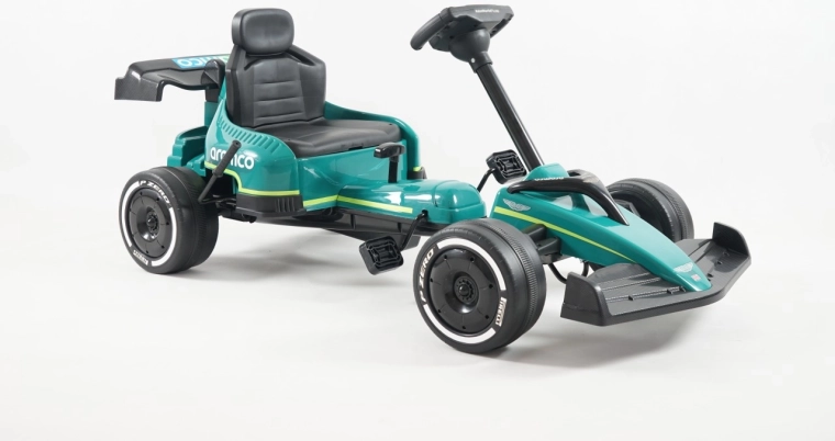 Stijlvolle kindertrapkart geïnspireerd door het merk ASTON MARTIN met een stevige constructie, soepele rit en uitstekende wendbaarheid. Voorzien van kettingaandrijving met volledig afdekking, kogellager EVA-wielen voor stille rit, handrem en versnelling voor voor-/achteruit en vrijloop. Maximaal draagvermogen 25 kg en een sportieve, geprofileerde zitting voor comfort en veiligheid.