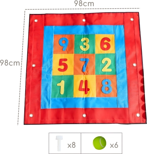 Deze grootschalige STEM-doelschijf van circa 98 × 98 cm combineert sportieve competitie met speels leren van cijfers. Eenvoudige regels, felle kleuren en directe feedback na de landing van de bal motiveren kinderen om herhaaldelijk te oefenen en in groepen samen te werken.