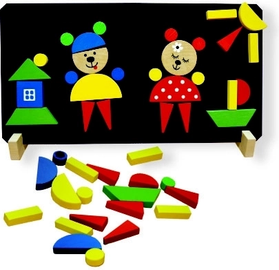 Het magnetische bord en de houten stukjes zijn de sleutelonderdelen van deze set. Deze stukjes met magneet stellen kinderen in staat om diverse motieven en verhaaltjes samen te stellen. De set is niet geschikt voor kinderen jonger dan 3 jaar, omdat deze kleine onderdelen bevat die verstikkingsgevaar kunnen opleveren.
