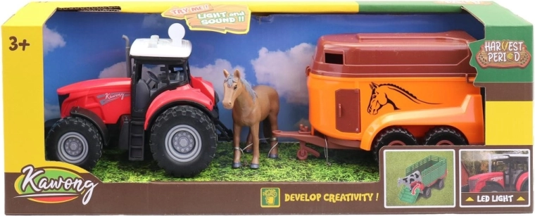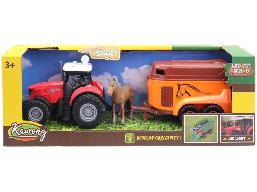 De elektrische tractor met aanhanger voor het vervoeren van paarden is een geweldig speelgoed voor jonge boerderijliefhebbers. Dankzij het realistische uiterlijk en de praktische aanhanger gebruiken kinderen eenvoudig hun fantasie en bedenken ze hun eigen verhalen. Het speelgoed is gemaakt van duurzaam kunststof en wordt geleverd in een aantrekkelijke displaydoos – ook ideaal als cadeau.