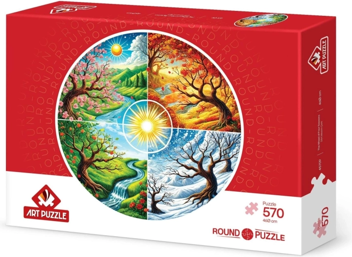 Geniet van een unieke puzzelervaring met een ronde puzzel die alle vier de seizoenen verenigt in één harmonieus beeld. Dankzij 570 nauwkeurig uitgesneden stukjes verloopt het leggen soepel en leuk, geschikt voor licht gevorderden en enthousiaste puzzelliefhebbers.