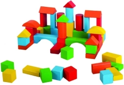 Kleurige houten bouwset met 50 hoogwaardig afgewerkte blokken in verschillende vormen voor kleine bouwers. Stimuleert fijne motoriek, creativiteit en ruimtelijk inzicht. Gemaakt van veilig hout, voldoet aan de EU-normen en is geschikt voor kinderen vanaf 2 jaar.