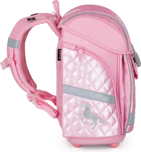 De stijlvolle schoolrugzak Premium Light met romantisch paardenmotief zal jonge schoolmeisjes vanaf een lengte van ca. 121 cm aanspreken. Dankzij de lichtgewicht constructie en slimme ergonomie draagt hij uitzonderlijk comfortabel: met ademend gewatteerd rugpand (Anatomic Bag System), brede gewatteerde schouderbanden, borstband en aantrekriemen voor de juiste positionering op de rug.