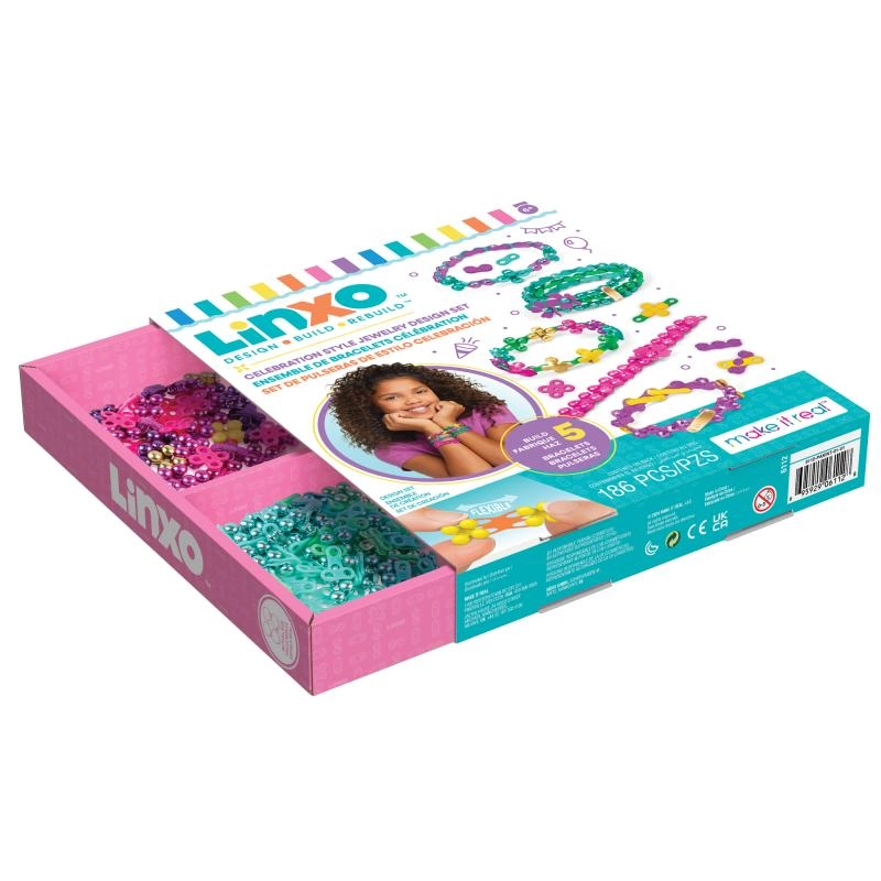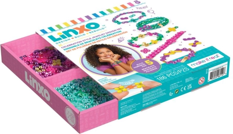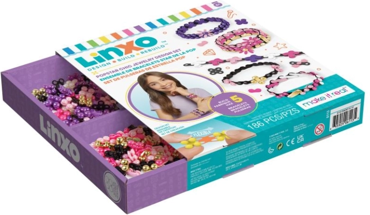 De Linxo sieradenset geeft kinderen de mogelijkheid hun eigen stijl te laten zien. Dankzij het slimme kliksysteem kunnen onderdelen eenvoudig worden gecombineerd, in lengte worden aangepast en op elk moment weer uit elkaar gehaald en opnieuw opgebouwd. Maak unieke armbanden, hangers en kleine versieringen die je kunt mixen en layeren.