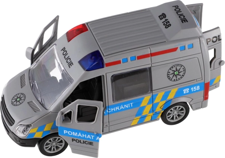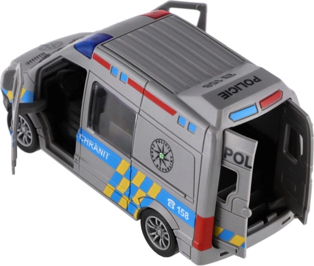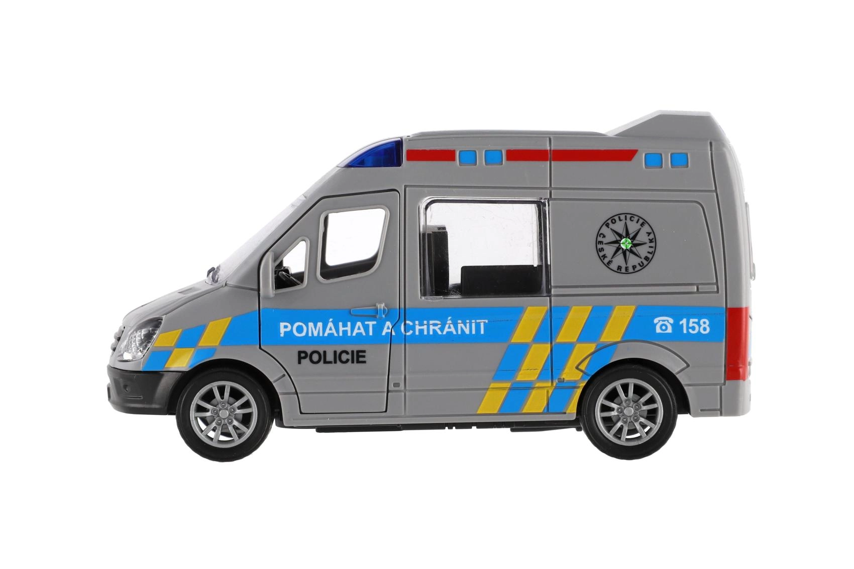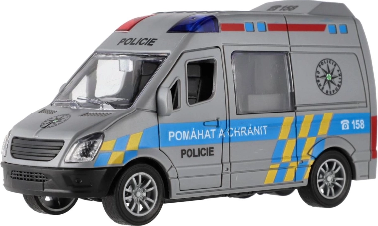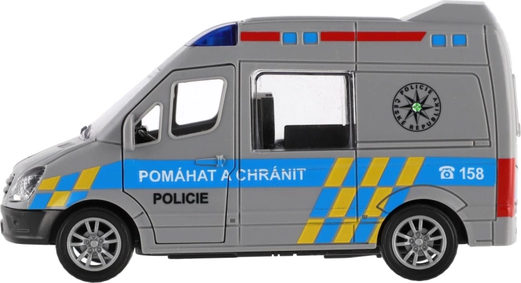 Start spannende politiezendingen met het kunststof voertuig op vliegwielaandrijving. Trek de auto eenvoudig naar achteren en kijk hoe hij soepel naar voren rijdt. Dankzij het compacte formaat van 12 cm ligt hij fijn in kinderhanden en is hij geschikt voor thuisbanen of stadsspelletjes.