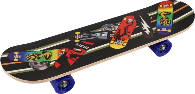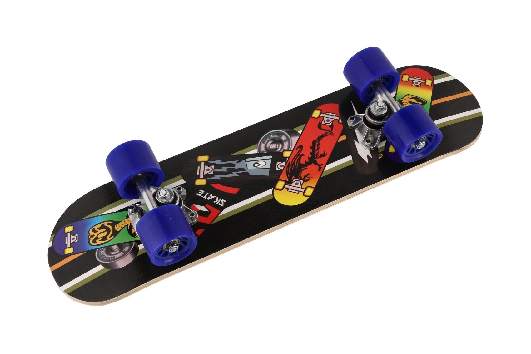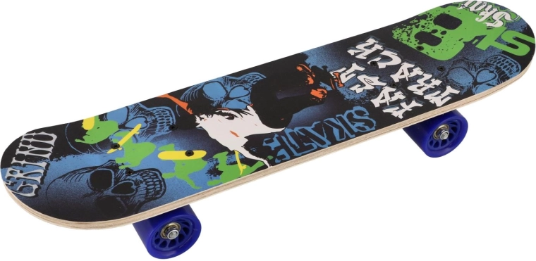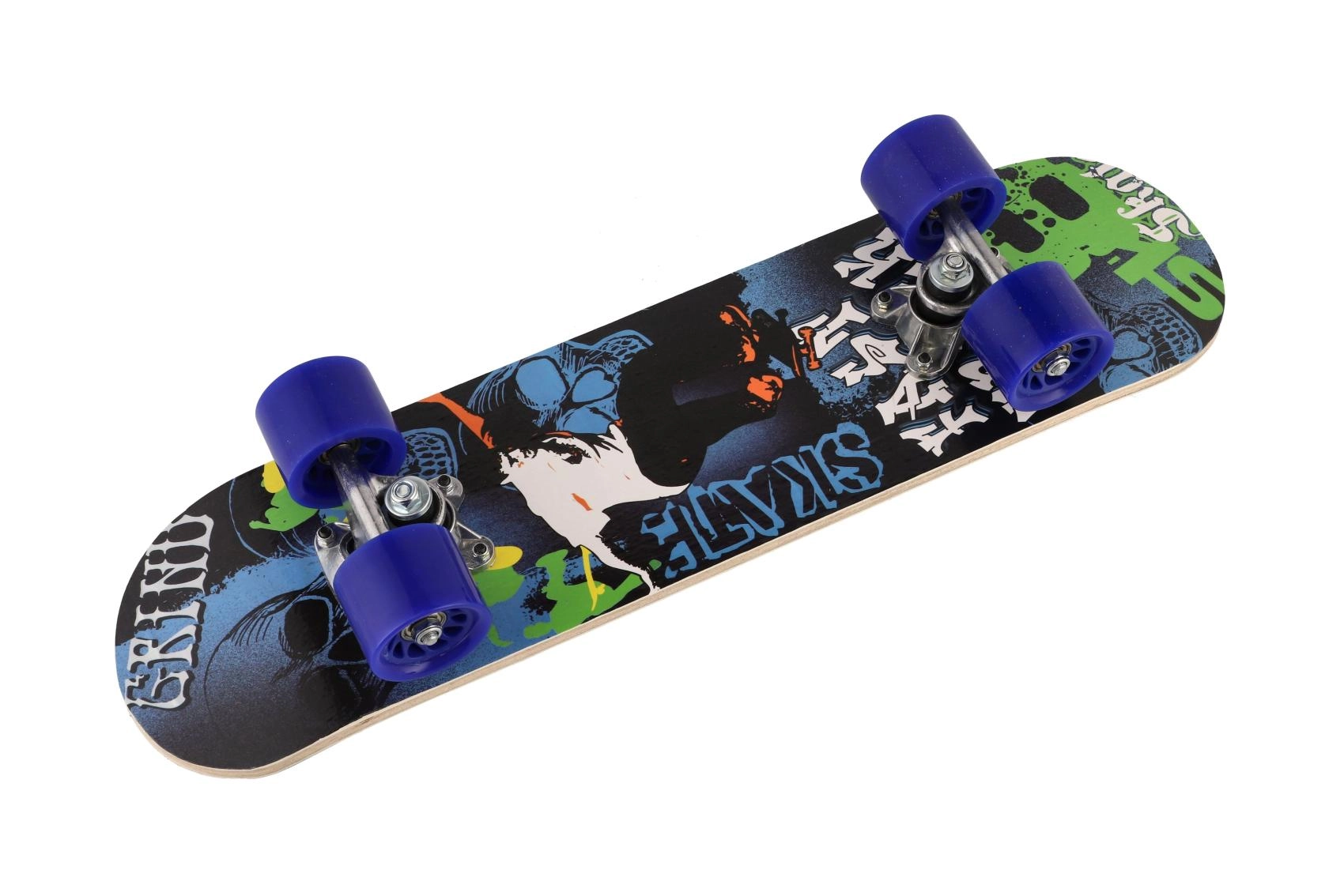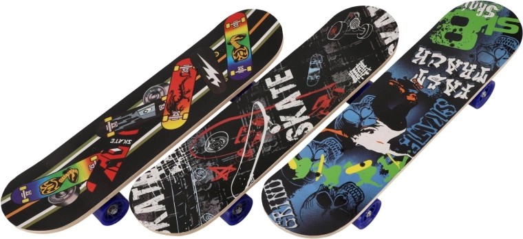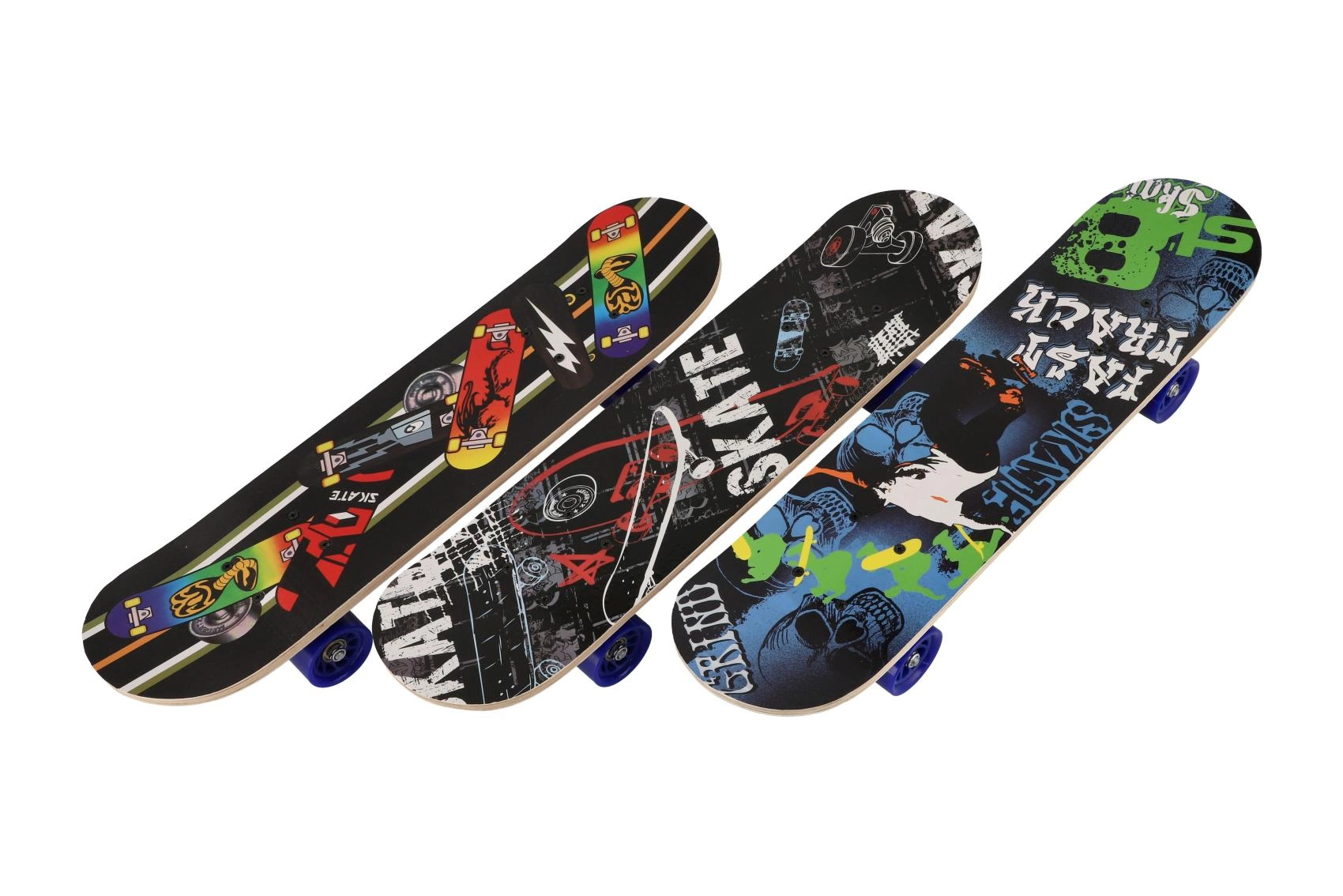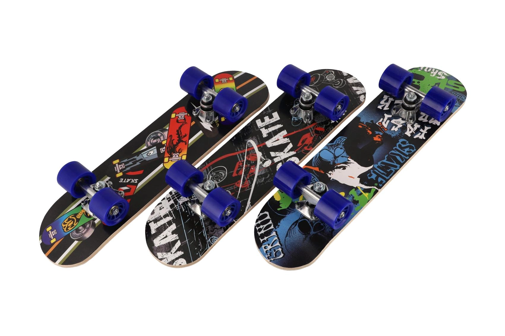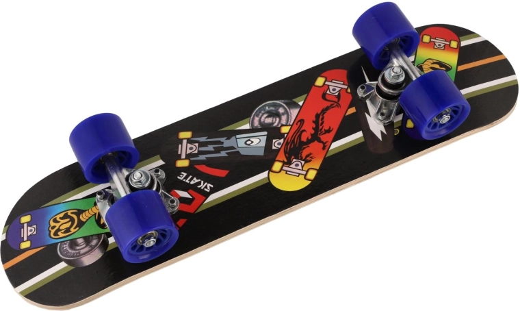 Licht en duurzaam kinder-skateboard van esdoornhout met een lengte van ca. 60 cm, een uitstekende keuze voor jonge rijders. Biedt een stevige en stabiele constructie, aluminium trucks en kwalitatieve PU-wielen voor een soepele en stille rit. Dankzij het compacte formaat is hij makkelijk te bedienen en geschikt voor beginners en meer gevorderde kinderen. Het maximale draagvermogen is 60 kg en de aantrekkelijke graphics zijn verkrijgbaar in 3 kleuropties.