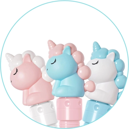 De lichte kunststof constructie, comfortabele grip en het speelse eenhoornthema stimuleren natuurlijke beweging en coördinatie. Het pistool is ook geschikt voor jongere kinderen – de bediening is intuïtief, zonder ingewikkeld vullen van een reservoir. Uiterlijk en kleuren kunnen variëren en worden willekeurig verzonden.