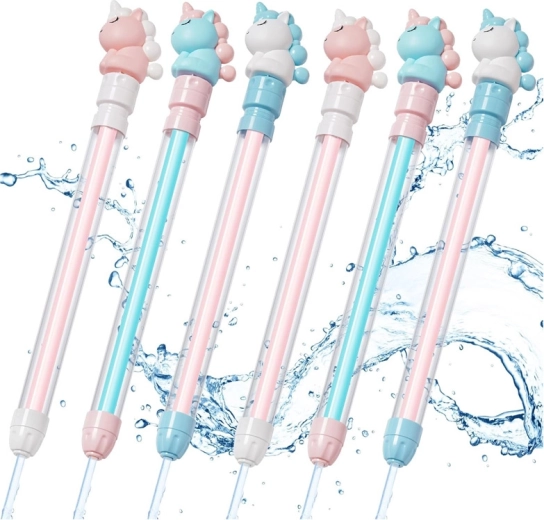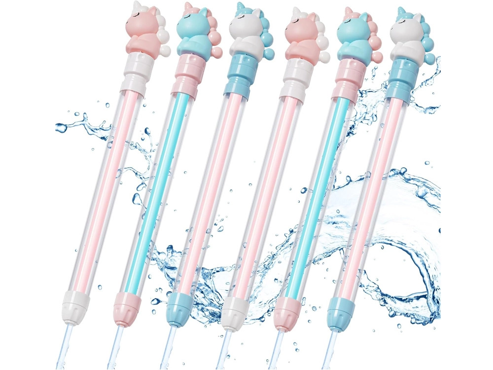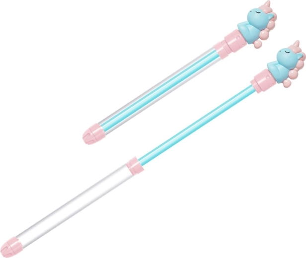 Het waterpistool met eenhoorn is het ideale speelgoed voor warme dagen. De transparante behuizing toont het waterniveau en het pompmechanisme werkt als een klassieke spuit – dompel eenvoudig de punt in het water, trek aan de hendel en druk vervolgens in voor een krachtige straal. Zo krijgen kinderen een eenvoudige en leuke tool voor watergevechten bij het zwembad, in de tuin of bij het meer.