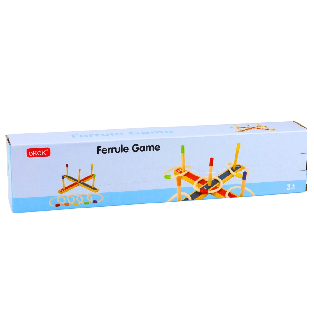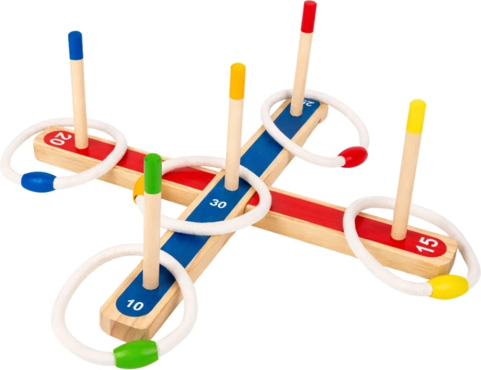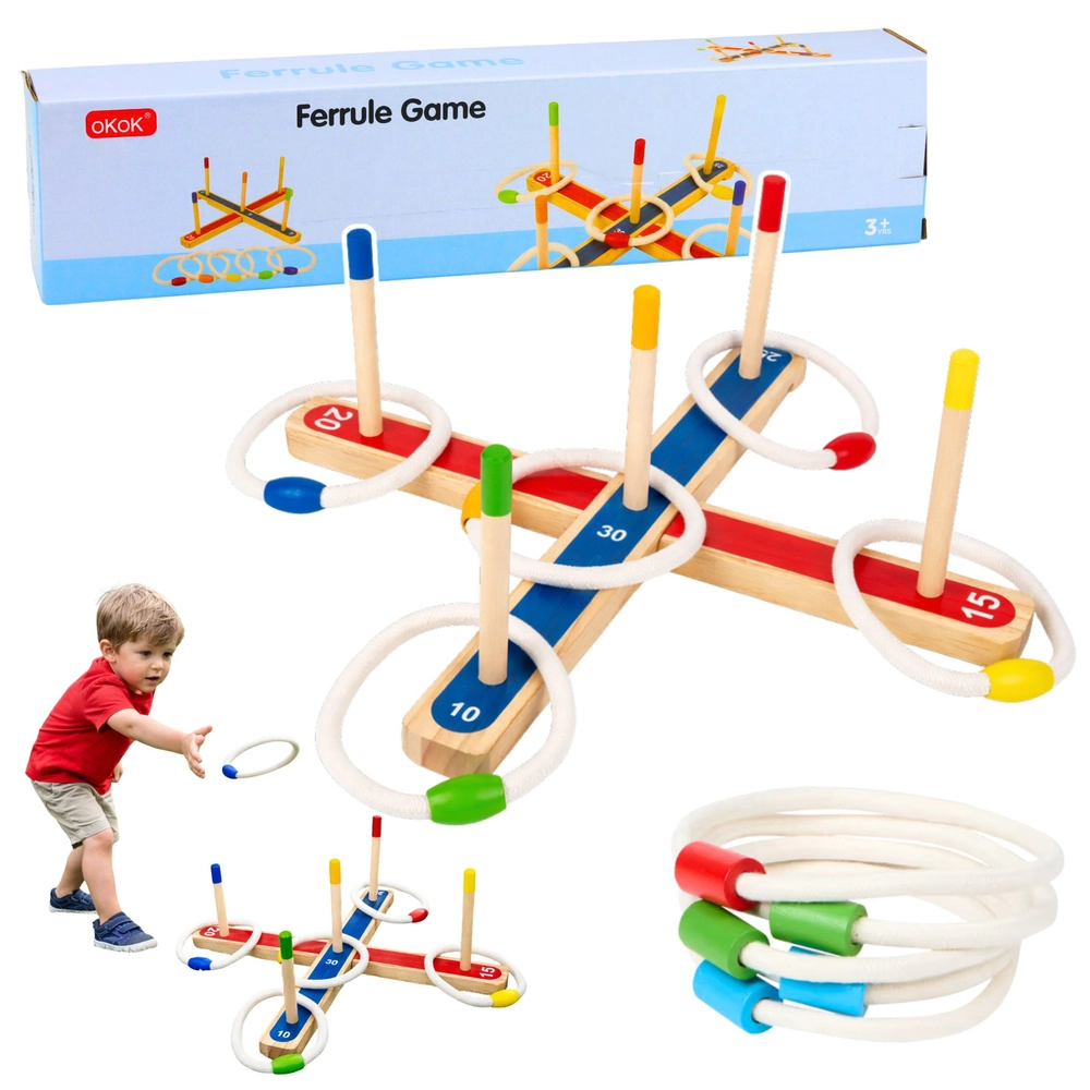 Het houten ring toss-spel draait om het gooien van ringen op verticale paaltjes met een toegewezen puntenwaarde. De speler met de hoogste totaalscore wint, ideaal voor familietoernooien of een lichte training van nauwkeurigheid.