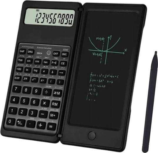 Compacte wetenschappelijke rekenmachine met geïntegreerd LCD-schrijfpad en stylus combineert berekeningen en snelle notities in één. Biedt een 10-cijferig display, een opvouwbaar en robuust ontwerp en een wisknop voor direct verwijderen van schetsen en berekeningen – ideaal voor school, kantoor en dagelijkse wiskundestudie.