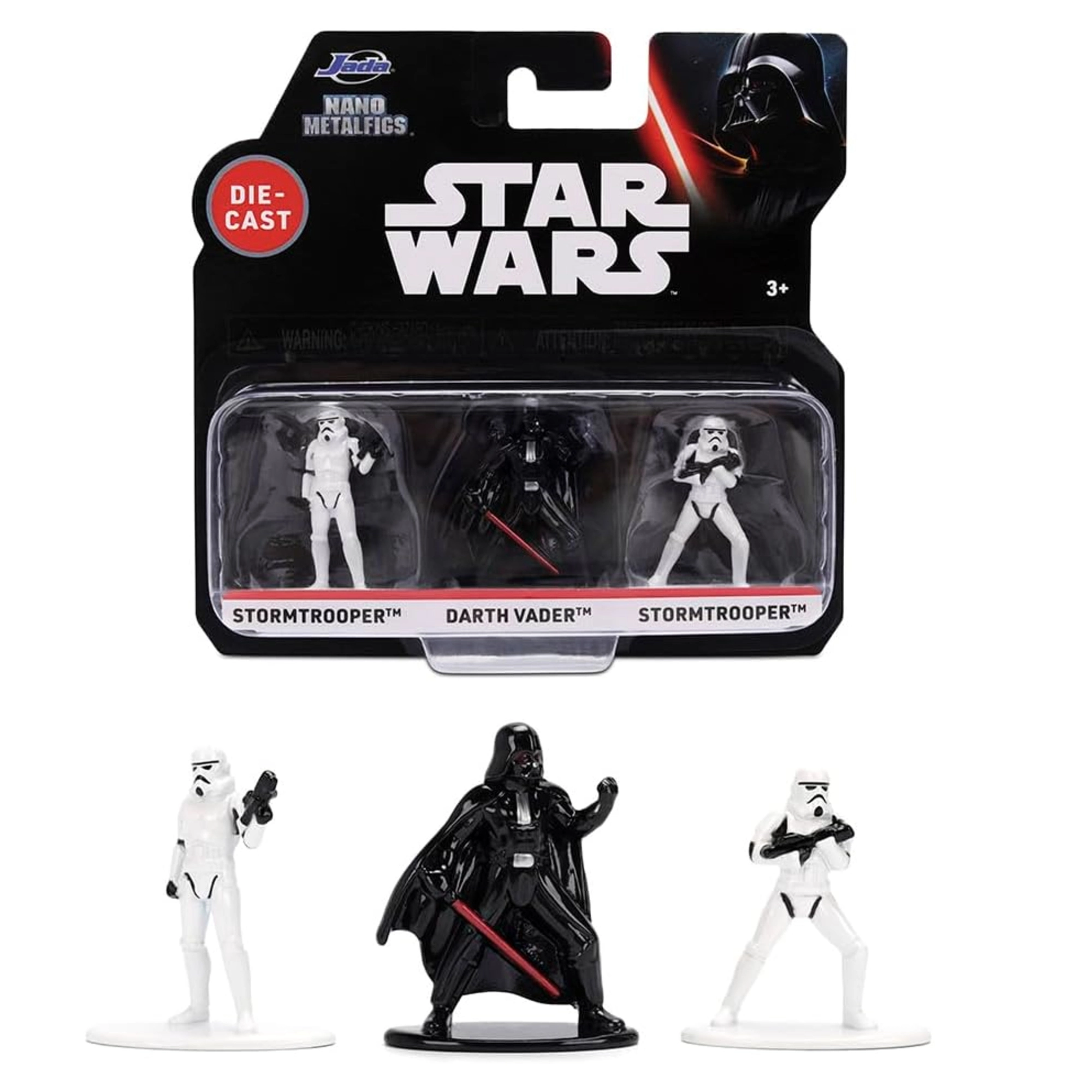 Ontdek de kracht van het Keizerrijk in miniatuur met de set Jada Toys Nano Metalfigs. Drie zorgvuldig uitgewerkte personages – Darth Vader en twee Stormtroopers – hebben authentieke poses geïnspireerd op de STAR WARS-films. De metalen uitvoering geeft de figuren een prettig gewicht, hoge duurzaamheid en een verzamelwaardig karakter.