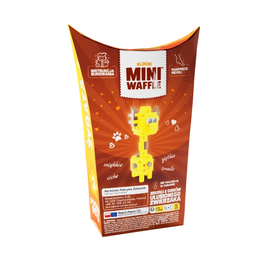 De set is volledig compatibel met andere Mini Waffle-bouwsets, zodat je je collectie kunt uitbreiden en steeds grotere en gevarieerdere werelden kunt bouwen. Gemaakt in Polen met aandacht voor kwaliteit en veiligheid.