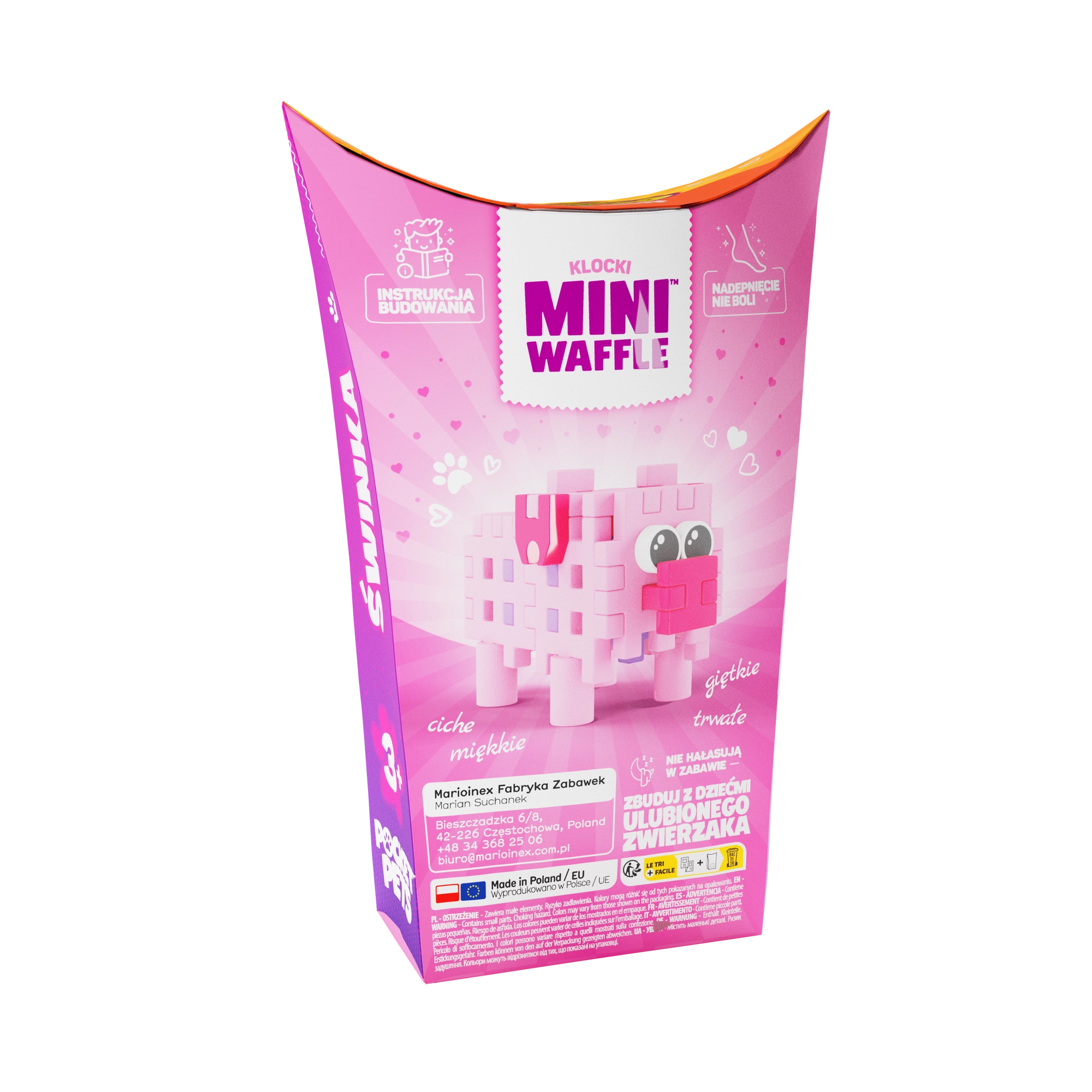 Ontdek de leuke bouwset Mini Waffle Pocket Pets – biggetje van het merk Marioinex, die creativiteit, fijne motoriek en logisch denken stimuleert. De compacte set met 25 kleurrijke onderdelen laat kinderen een schattig biggetjesfiguurtje bouwen en opnemen in hun eigen verhalen. De onderdelen zijn flexibel, duurzaam en veilig, klikken gemakkelijk in en uit elkaar en passen perfect bij andere Mini Waffle-sets.