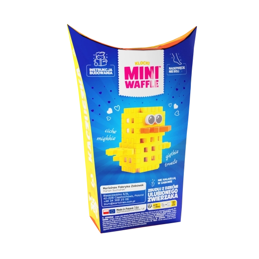 Ontdek de creatieve wereld met de mini bouwset MARIOINEX Mini Waffle Pocket Pets. De compacte set met 16 gekleurde onderdelen laat kinderen een schattige eendenfiguur bouwen en ontwikkelt creativiteit, fijne motoriek en logisch denken. De elementen zijn zacht, duurzaam en veilig, eenvoudig te koppelen en los te maken en passen perfect bij andere Mini Waffle-sets.