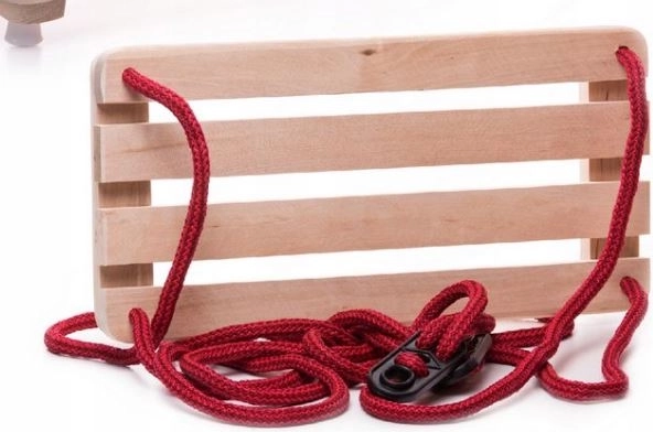 De zitting van hoogwaardige houten lamellen met afgeronde randen garandeert comfort en stabiliteit tijdens het schommelen, zowel binnen als buiten.